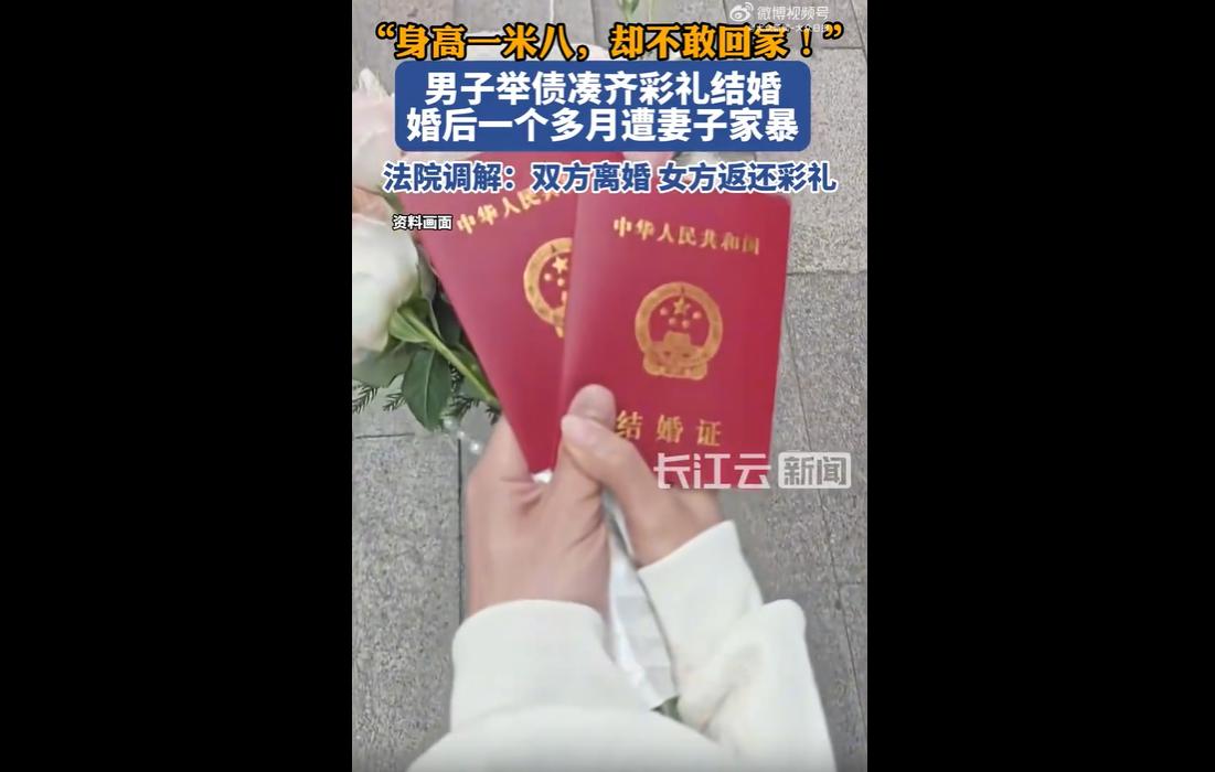 吉林齐先生与王女士相识半年结婚,他举债凑齐彩礼,婚后仅一个多月便遭女方频繁家暴、持械威胁。 齐先生提出离婚,王女士拒绝并远赴国外嚣张叫板。 齐先生持证据起诉,法官跨时区调解、释明法律,最终双方达成协议,解除婚姻关系。 近日,王女士已返还大部分彩礼。 这段婚姻的悲剧,始于一场充满压力的彩礼,终于无休止的家暴。 齐先生为了结婚,借遍亲友凑齐彩礼,本是满心期待幸福生活,却没想到婚前性情温和的妻子,婚后会性情大变,频繁因琐事施暴、持械威胁,让身高一米八的他长期处于恐惧之中,甚至在法庭上声音颤抖,可见其遭受的身心伤害之深。 短短一个多月的婚姻,不仅耗尽了他的期待,更让他背负了巨额外债,陷入走投无路的困境。 王女士的行为,既令人不解,也需要理性看待。婚后施暴本身就是明确的违法行为,而她在齐先生提出离婚后,不仅拒绝返还彩礼、回避沟通,还远赴国外嚣张放话,无视法律底线,这种态度不仅伤害了齐先生,也不利于问题的解决。 不过,也应看到,法官的耐心调解的最终让她正视自身责任,返还大部分彩礼,也算弥补了齐先生的部分损失。 值得关注的是,这起案件也打破了“家暴仅发生在女性身上”的固有认知,这种现象在现实生活中并不少见。 就像我的一个男同事,即便身材五大三粗,也经常遭受妻子的殴打,甚至曾绝望到喝药自杀,令人揪心。 事实上,男性也可能成为家暴的受害者,却常常因为“男性应坚强”“家丑不可外扬”等固有观念,选择隐忍,难以主动维权。 齐先生能够鼓起勇气,收集伤情照片、报警回执等完整证据起诉离婚,这种勇敢维护自身权益的行为,值得肯定,也为包括我同事在内的其他男性家暴受害者提供了借鉴。