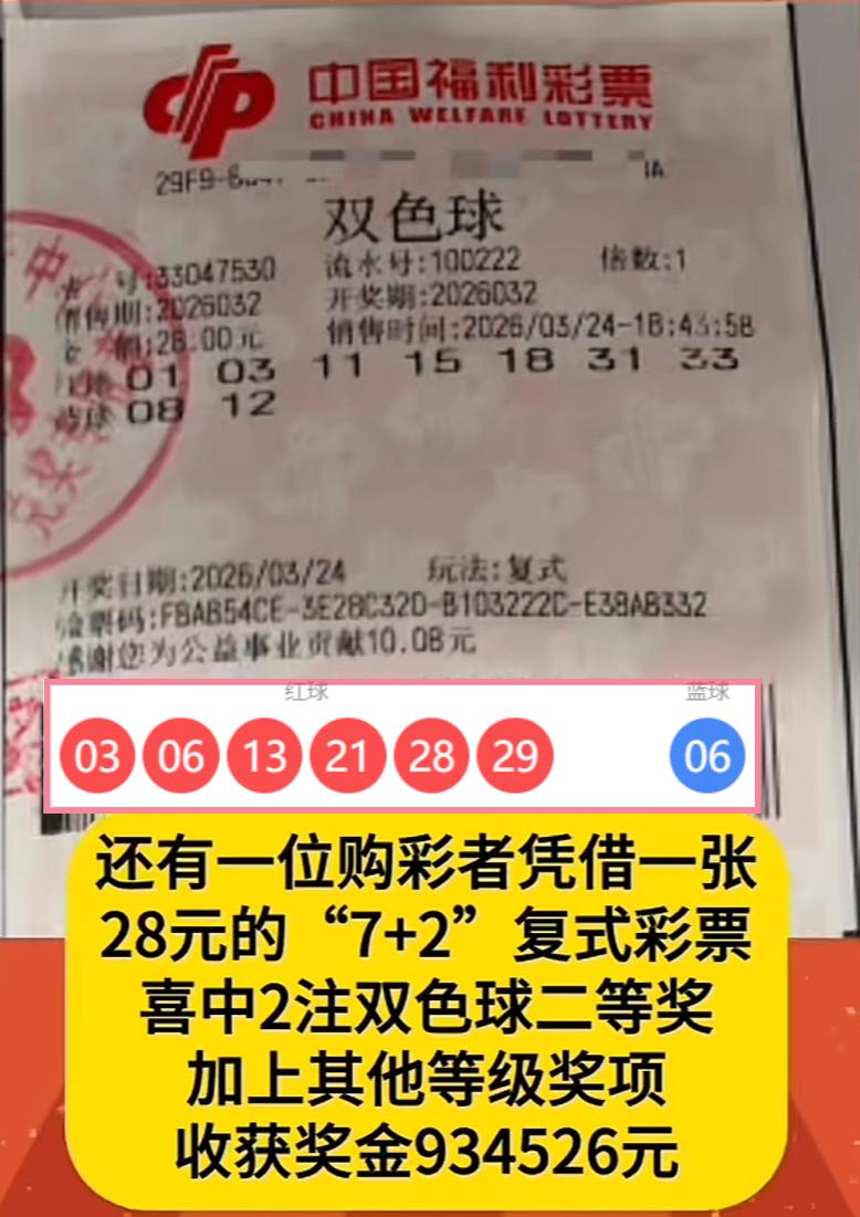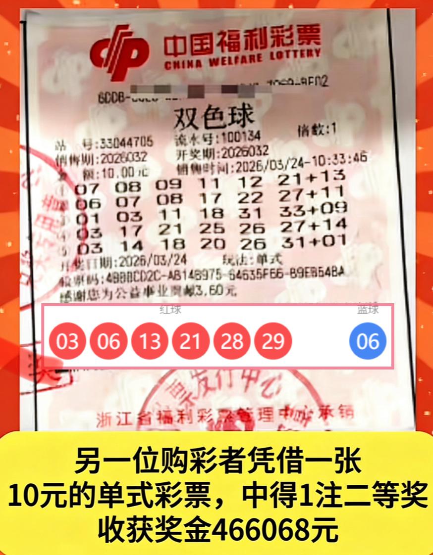 喜报临门,一城三捷!浙江新昌县在双色球第26032期开奖中,喜揽三注二等奖,佳音频传,满城同贺。 其中一位幸运儿,凭借一份多年的坚守,以一张守号已久的“7+1”复式票,终获46.7万元回报,诚可谓“念念不忘,必有回响”,时光不负有心人。另一位则以一张10元5注的单式票,精准击中46.6万元大奖,堪称理性购彩的典范——期期十元,亦能叩开幸运之门。还有一位彩民,采用“7+2”复式投注,一举收获两注二等奖,总奖金达93.4万元,好运成双,可喜可贺。 新政实施以来,二等奖备受瞩目,其奖金水平显著提升,已成为吸引广大彩友、推动每期销量增长的重要动力。二等奖,可谓新规之下的最大亮点与受益者。