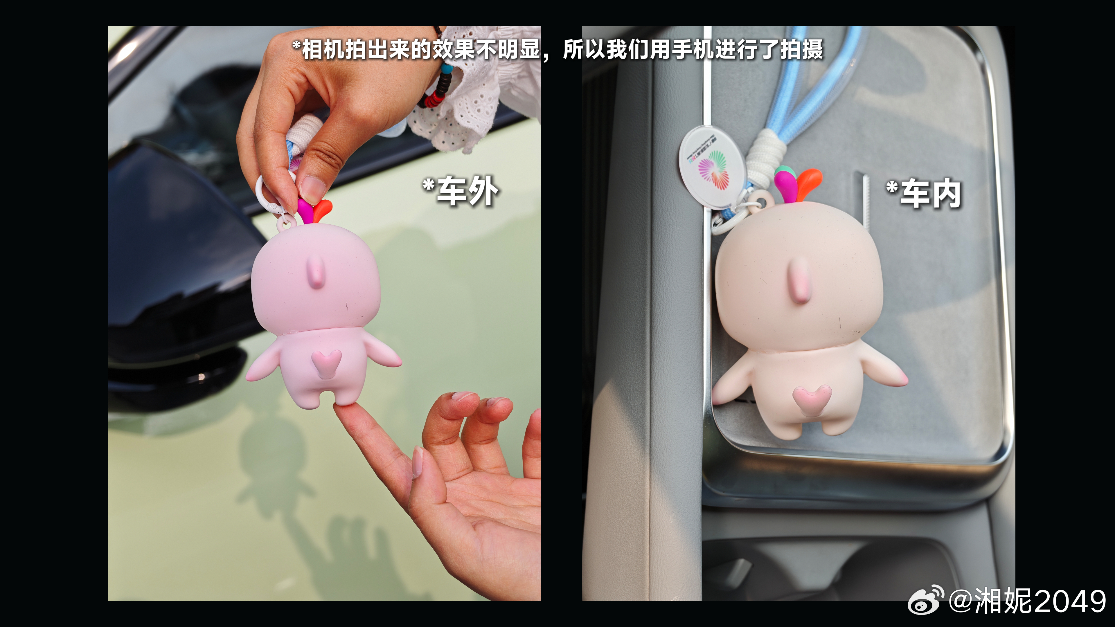 其次就是防晒,全景天幕有双层镀银,看大湾鸡的变色情况也可以直观了解这台车的防晒效果。
