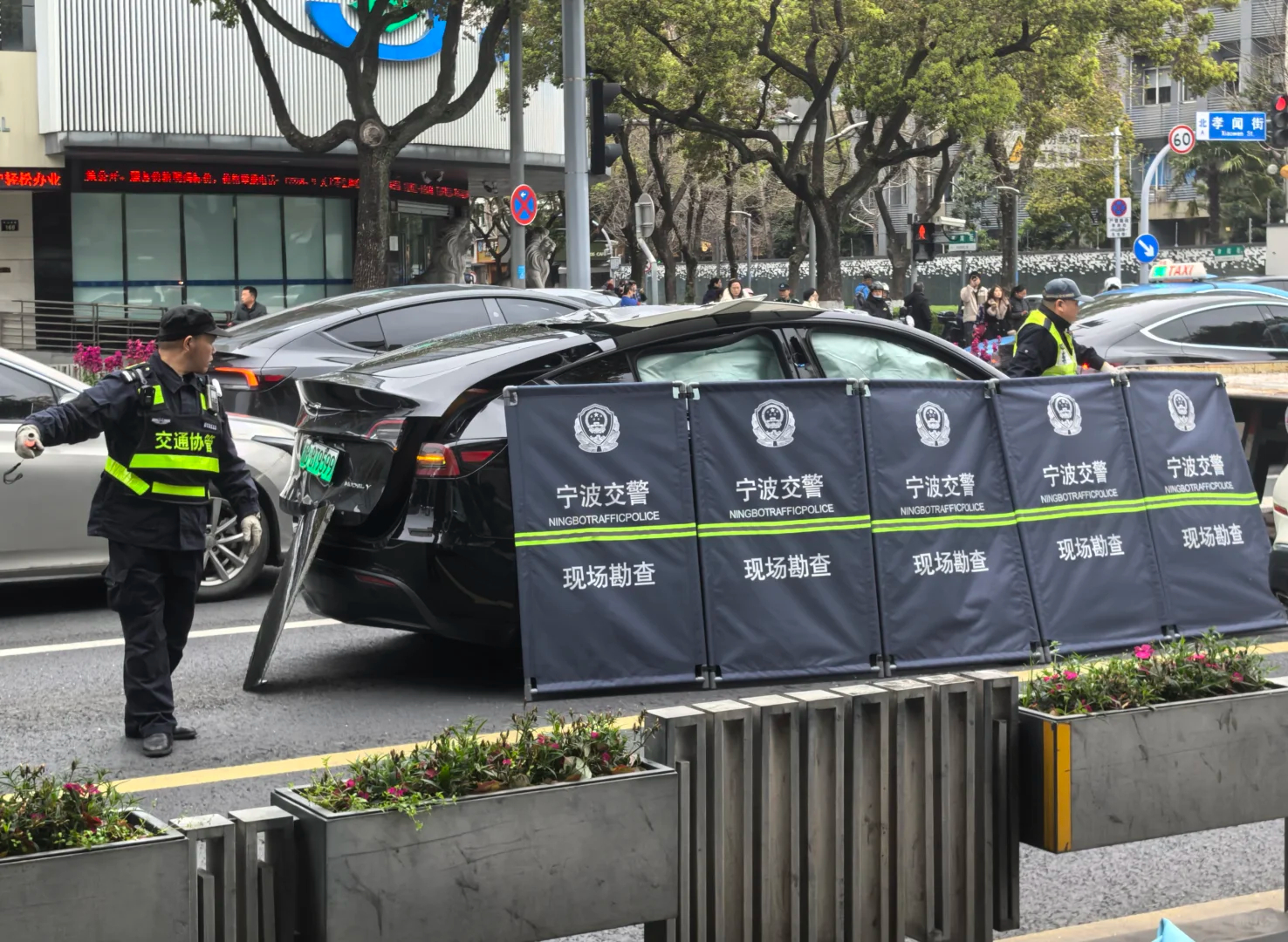 宁波一特斯拉发生离奇事故挡风玻璃飞出 3月27日,据多名网友发布,宁波孝闻街上发出一声巨响,是一辆特斯拉发生事故,安全气囊弹出,挡风玻璃也飞落在车头前方而且目测是非接触性事故