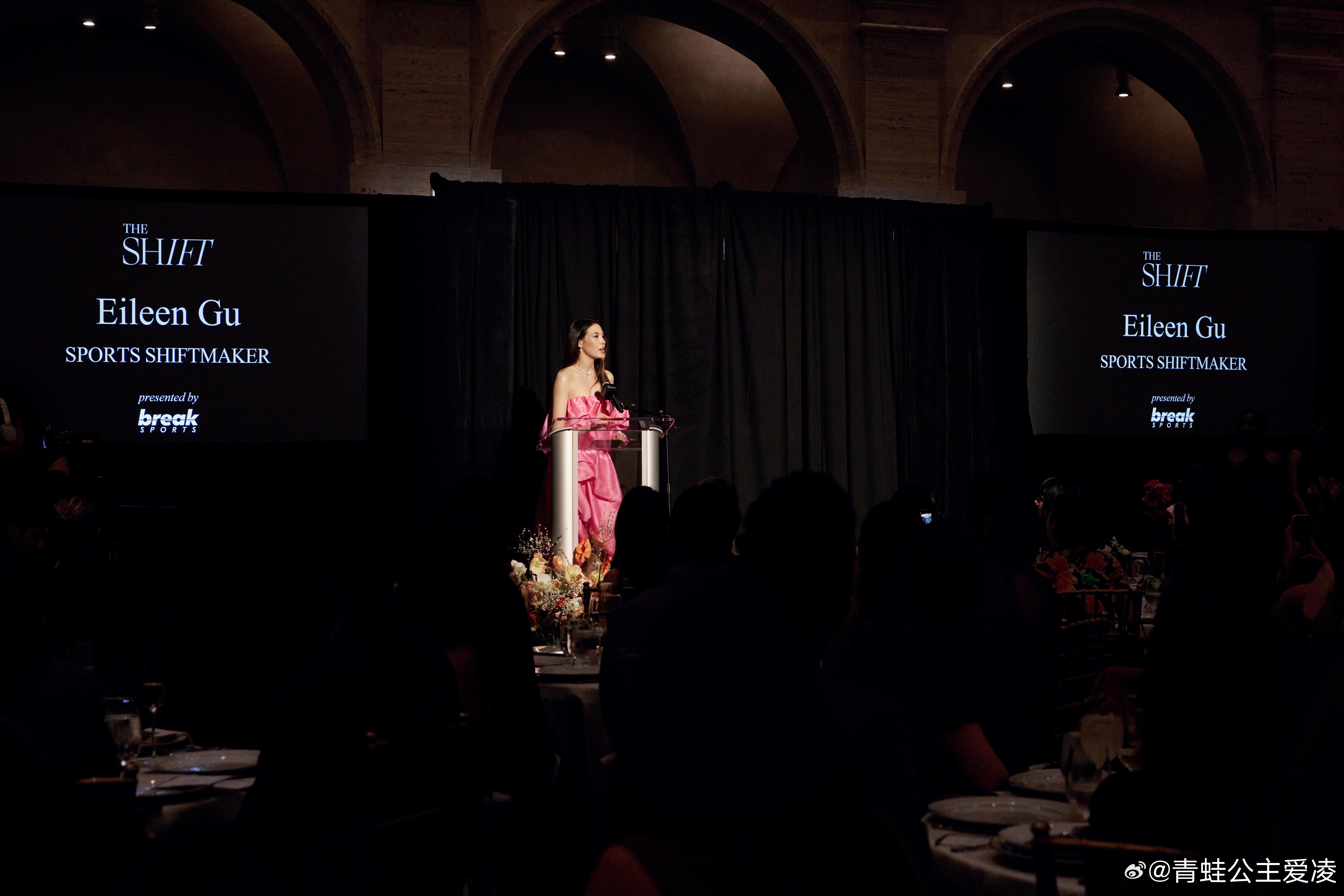 谷爱凌晒粉色长裙超美造型:今天在哈佛艺术博物馆的Shiftmaker Gala 荣幸获得Sport Shiftmaker奖 💖 庆祝女性的力量 🤍 #谷爱凌#