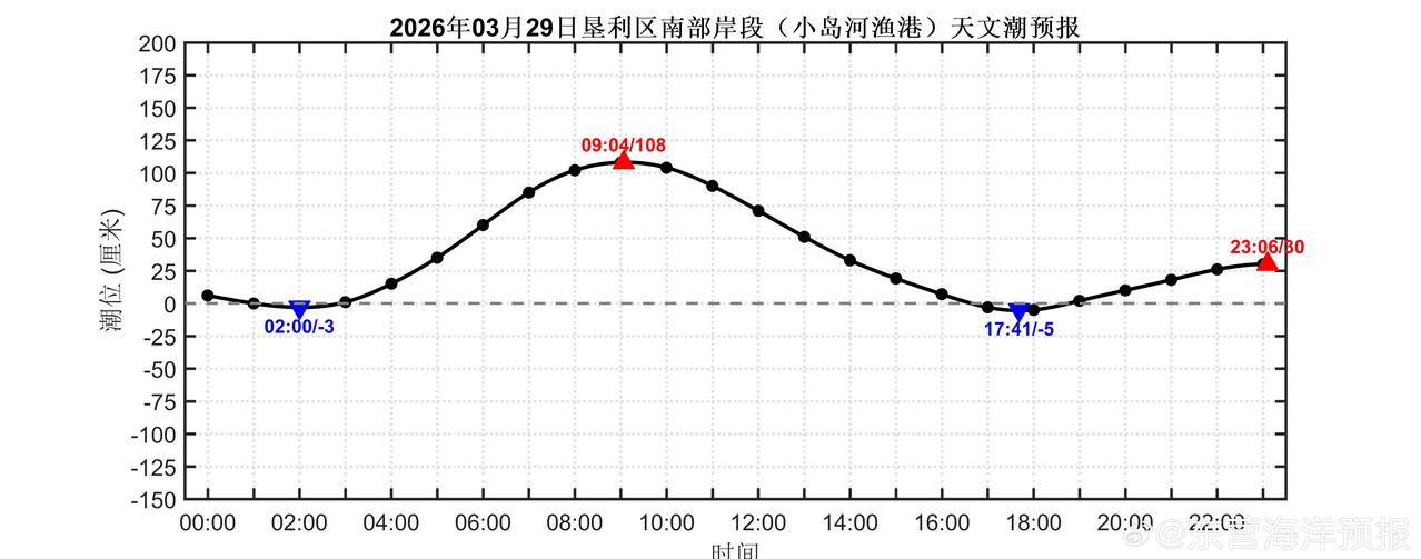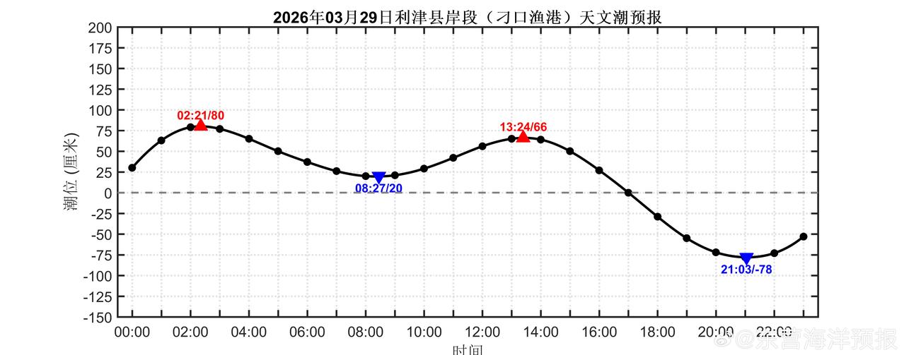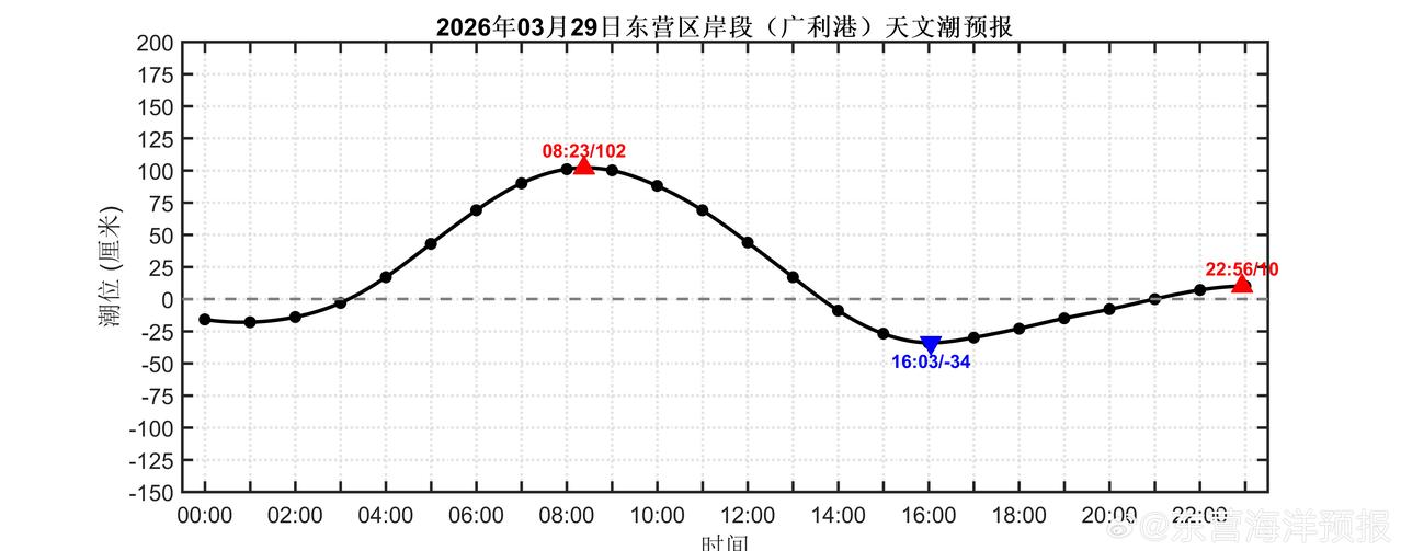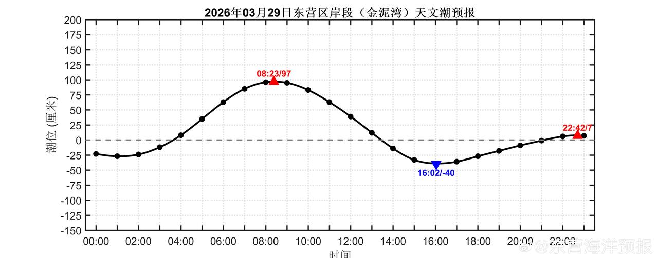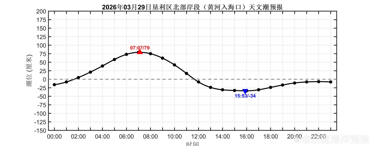 2026年03月29日东营沿岸(新户东南股、刁口渔港、东营港、黄河入海口、小岛河渔港、金泥湾和广利港)天文潮预报 潮汐预报