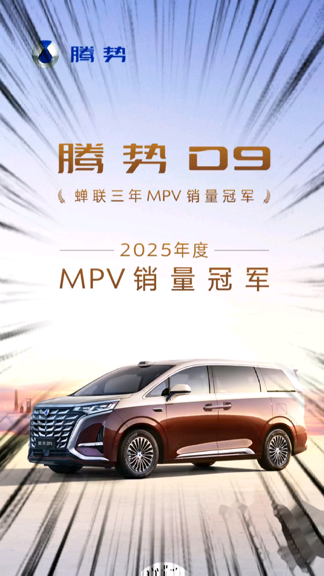 第二代腾势D9 3月29日第二代腾势D9要来了,作为新能源豪华MPV的开创者,腾势D9连续三年蝉联中国MPV市场年度销量冠军,这个成绩本身就说明,它已经不只是卖得好,而是真的赢得了市场认可。