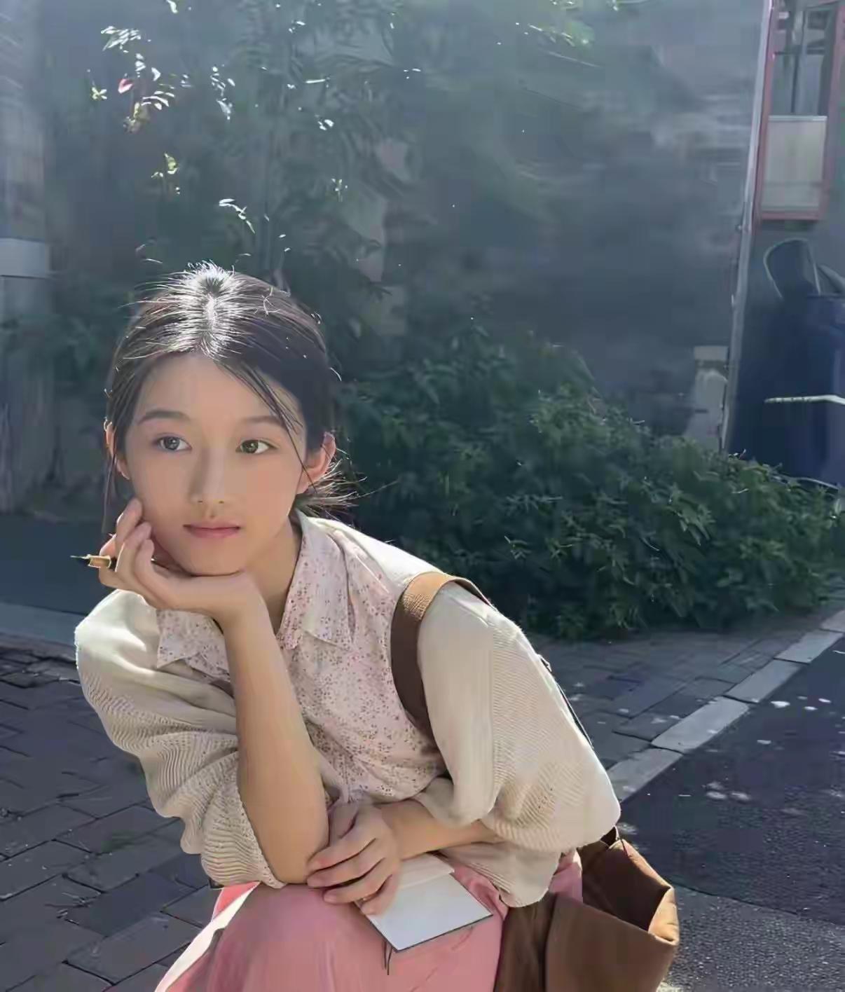 春日暖阳下,粉裙少女静坐花丛中,温柔如水。