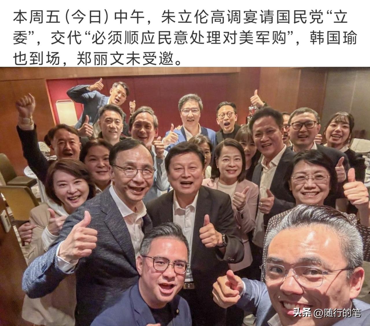 朱立伦退而不休,正在默默的影响国民党内部政客的思想。 别看朱立伦已经退下来了,但是他在国民党内部的影响力还是相当大的,特别是在这些有头有脸的国民党政客当中,朱立伦的面子甚至比郑丽文还要来得大,从朱立伦在27日主导的这场饭局,邀请出席的人就可以看出,朱立伦正在潜移默化的影响着国民党内部大多数政客的思想,很多国民党政客都认可朱立伦,愿意给朱立伦面子,很多不出席上周郑丽文餐会的“立委”也都出席了这次朱立伦的餐会。 作为一个已经退下来的前辈,朱立伦高调邀请这么多国民党“立委”聚餐,并且还不邀请作为党主席的郑丽文,这已经不仅仅是不给面子郑丽文了,而是有意架空郑丽文的权力,引导国民党内部的权力转移。