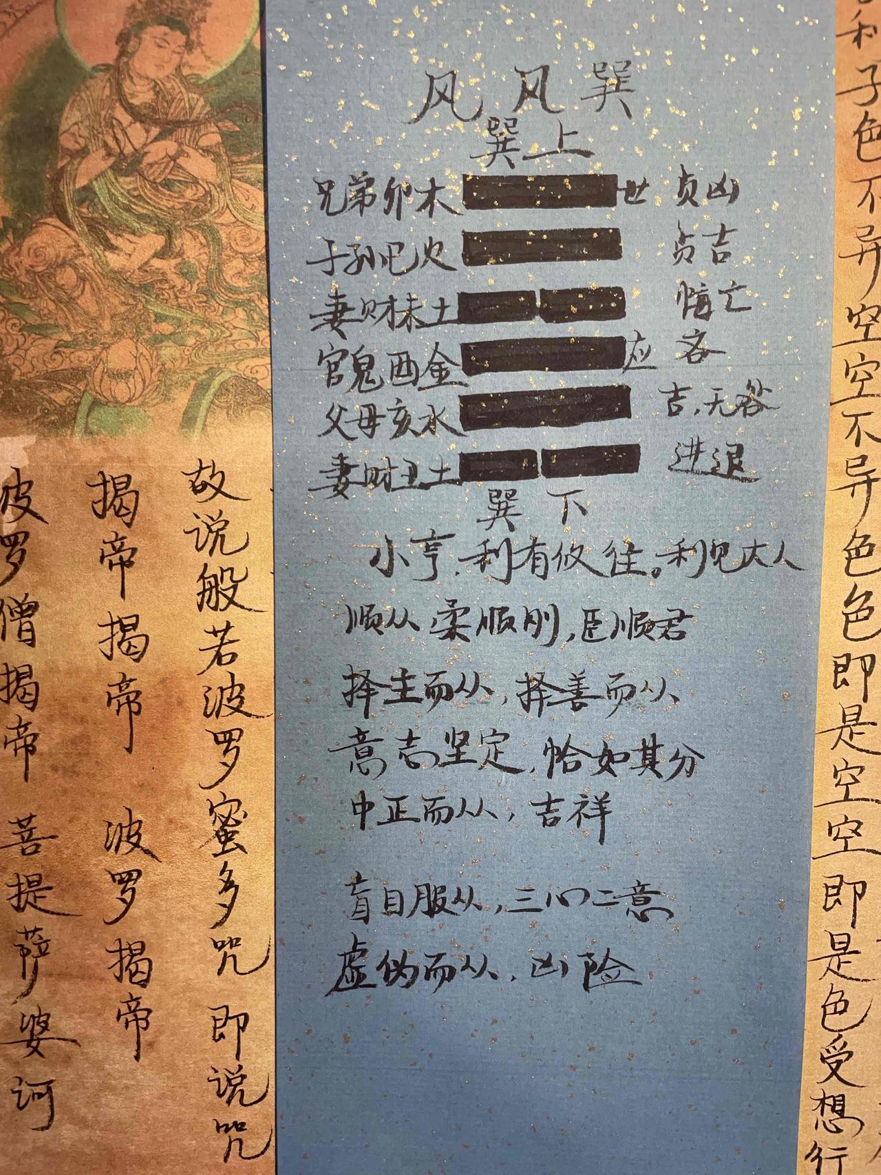 57风风巽 小亨。利有攸往,利见大人。 初六,进退,利武人之贞。 九二,巽在床下,用史巫纷若。吉,无咎。 九三,频巽,吝。 六四,悔亡,田获三品。 九五,贞吉。悔亡,无不利。无初有终。先庚三日,后庚三日。吉。 上九,巽在床下,丧其资斧,贞凶。 巽卦,上巽下巽,巽卦重叠,风随着风,意在强调,重申大人的命令。 巽卦为阴卦,阴柔顺从,顺从大人有利。 顺从不是盲目服从,必须择主而从,择明主明君,中正而从,才会吉祥。服从也要意志坚定,不可动摇,行为正道,恰如其分,才会有利。 盲目跟风,虚伪服从,勉强顺从,三心二意必会凶险。 易学智慧 巽卦 国学文化 周易 写字是一种生活 六爻卦理