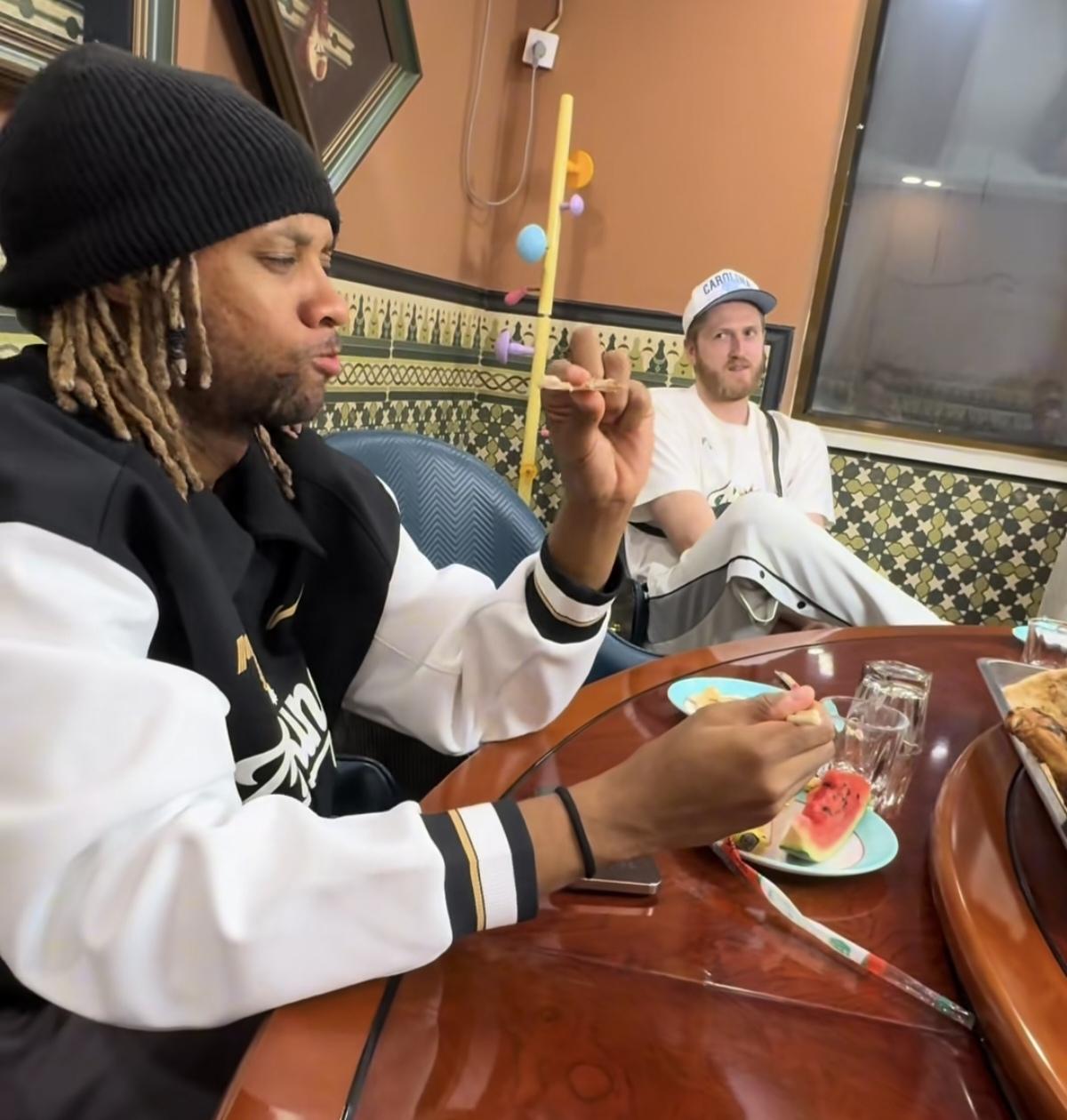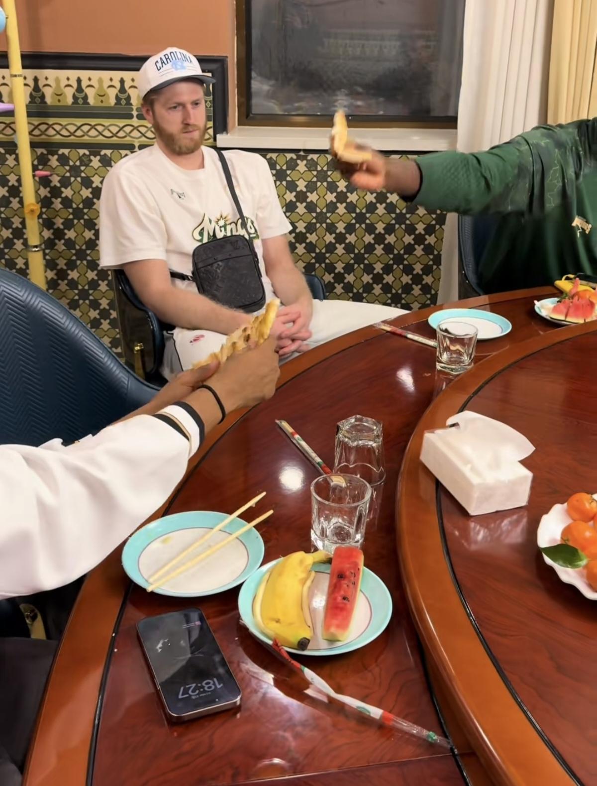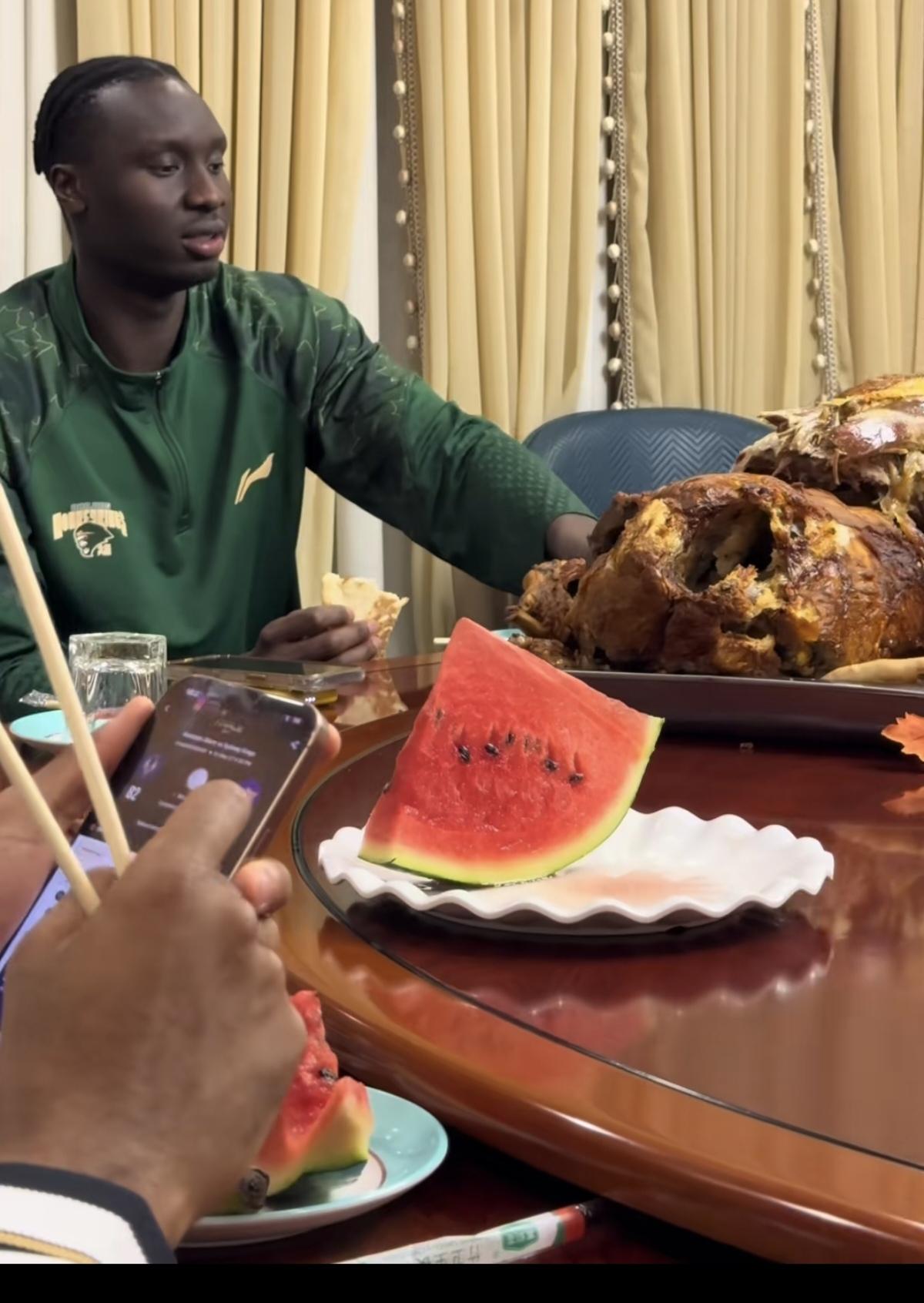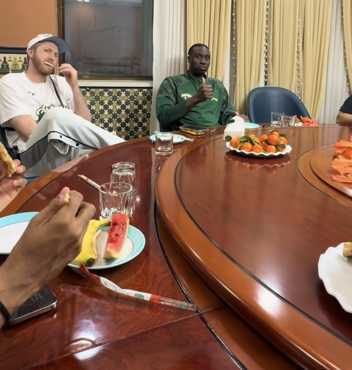 同曦男篮崇洋媚外,薄此厚彼,真是一个没出息,没前途的球队。昨天,同曦男篮发到达新疆后,在餐厅里全队吃烤全羊,西瓜的视频的。结果发现他们把外援安排在昂贵豪华的包厢里,而国内球员只能挤在大厅里的一张长桌上,而且饭食没有包厢的丰富。虽说现在的CBA,打球全靠外援赢球,但也不能如此的薄此厚彼,崇洋媚外吧!如此不公正待遇下去,你觉得国内球员会好好打球吗?看来是时候限制外援的人次,逼国内球员上进了!