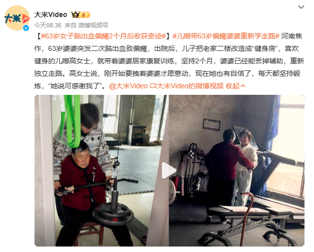 63岁女子脑出血偏瘫2个月后收获奇迹网友热评:“这不是偶然,是坚持与科学的胜利”。从卧床到行走,从失语到交流,案例印证:脑出血偏瘫康复需“早介入、勤训练、多鼓励”——社会对康复医学的信心,正被一个个“奇迹”点燃。