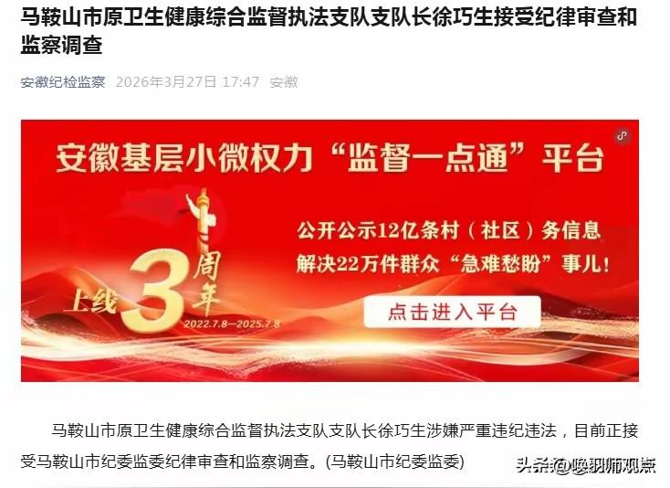 一支香烟、一张油卡,让“普法先进个人”一年内两次被查!小贪上瘾,大祸临头 核心内容: 1. 新闻回顾: 3月27日,马鞍山市原卫健监督执法支队支队长徐巧生涉嫌严重违纪违法被查。不到一年前,他刚因收受礼品、私车公养等问题被党内严重警告。 2. 深度解析: 专家指出,徐巧生的案例是“破窗效应”的典型——收一支香烟、吃一顿饭,就是那扇“破窗”。如果不及时修补,贪欲就会从这道裂缝中奔涌而出。 3. 反思与调整: 一次警告为何换不来“收手”?是侥幸心理、特权思想,还是监督失灵?警示我们:“微腐败”绝不能“微处理”,必须抓早抓小、防微杜渐。 4. 历史关联: 北宋张乖崖“一钱斩吏”的典故,正是对“微腐败”危害的精准洞察——“一日一钱,千日千钱,绳锯木断,水滴石穿”。 5. 结语: 一支香烟,可能就是权力失控的第一道裂缝。对于公职人员而言,守住底线,就是守住平安。 您身边是否有“微腐败”现象?如何从制度上杜绝?欢迎留言聊聊!群众身边腐败 南京非吸缓刑 违纪清单 宿迁创业监督 反违章监督