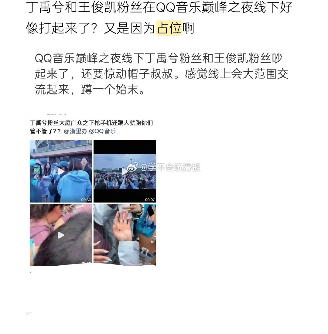 丁禹兮、王俊凯粉丝在QQ音乐巅峰之夜线下有了摩擦