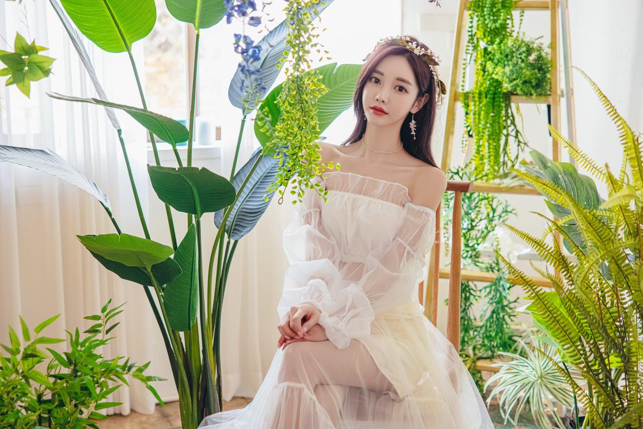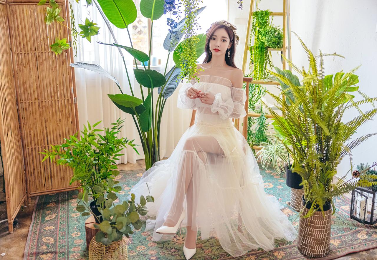 孙允珠伊甸园夏娃仙婉翡翠透纱摆裙图集(1)。