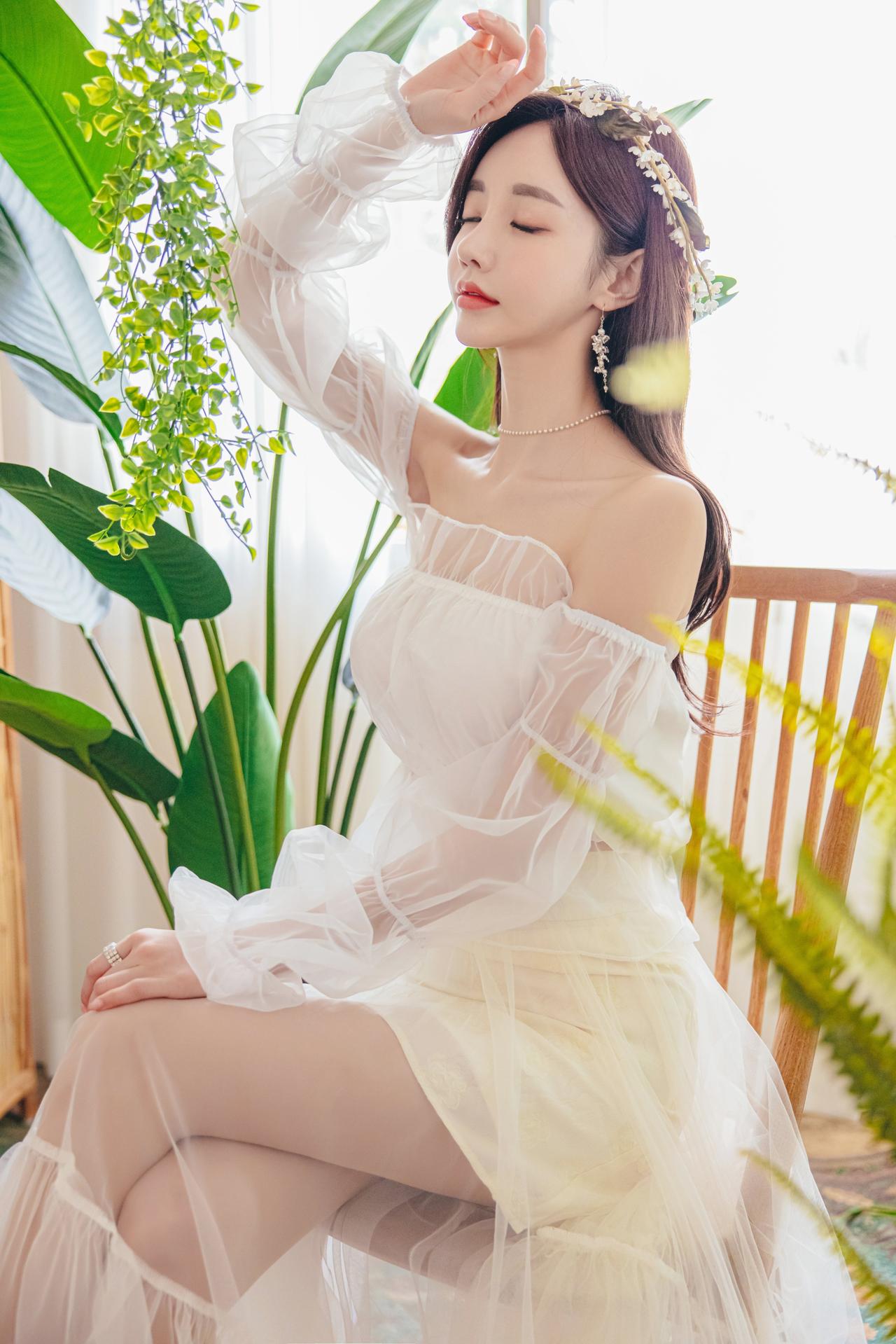 孙允珠伊甸园夏娃仙婉翡翠透纱摆裙图集。