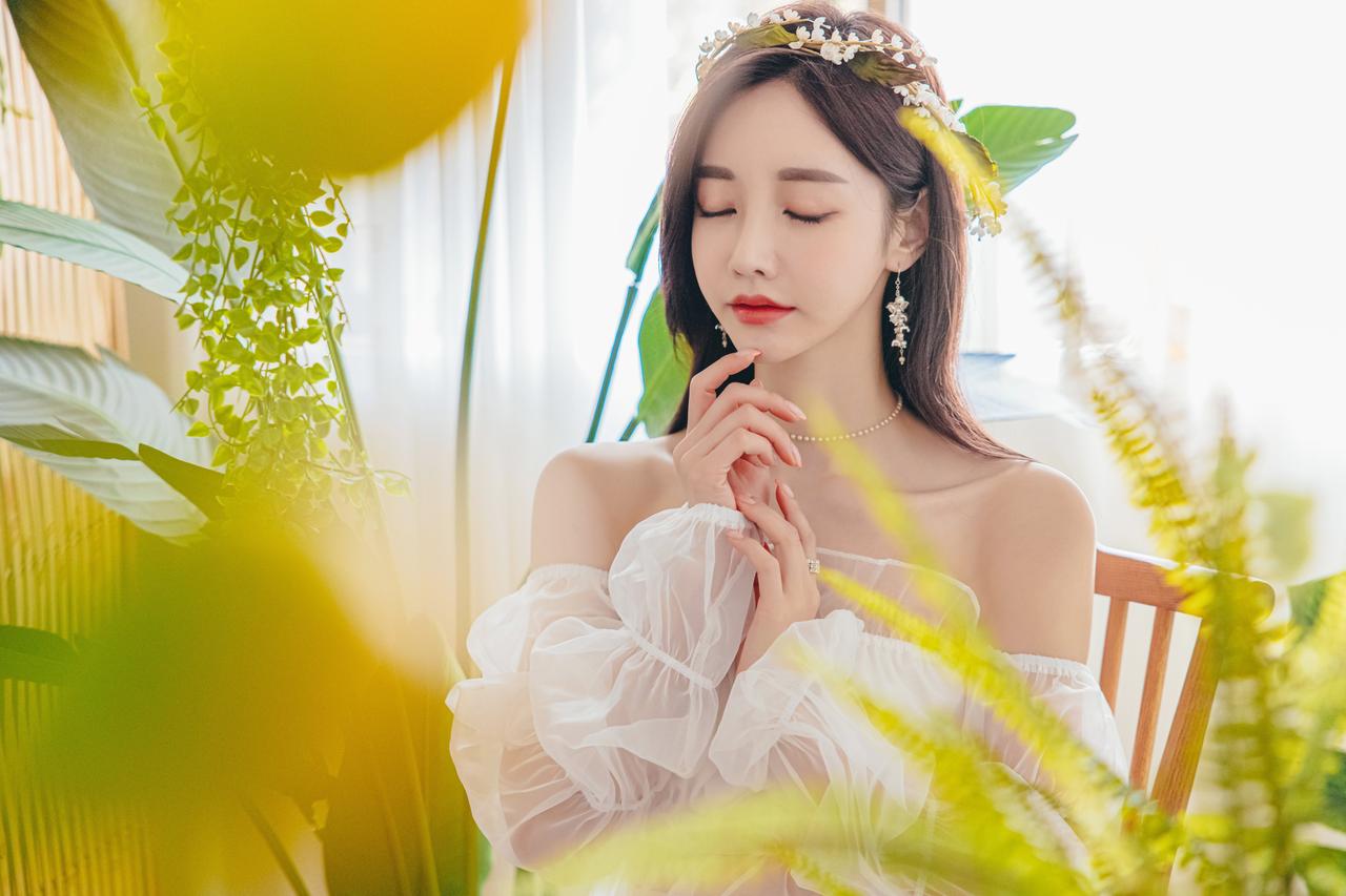 孙允珠伊甸园夏娃仙婉翡翠透纱摆裙图集(1)。