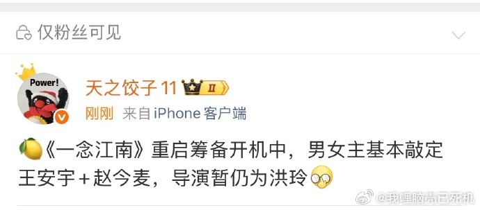 曝一念江南主演王安宇赵今麦一念江南重启中曝一念江南主演王安宇赵今麦,一念江南重启中,还是坐等一个正式官宣的见面啦,期待住和各位的故事早点见面啦~一念江南
