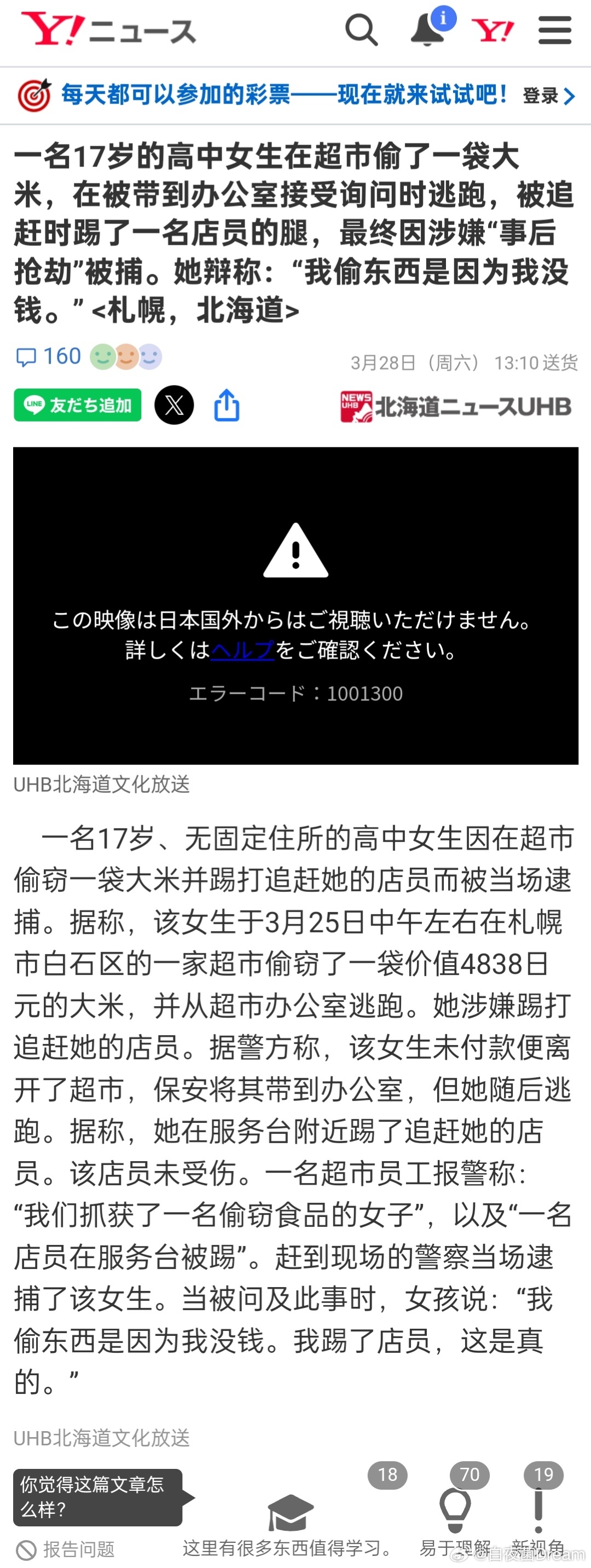 日本17岁女高中生偷米被抓