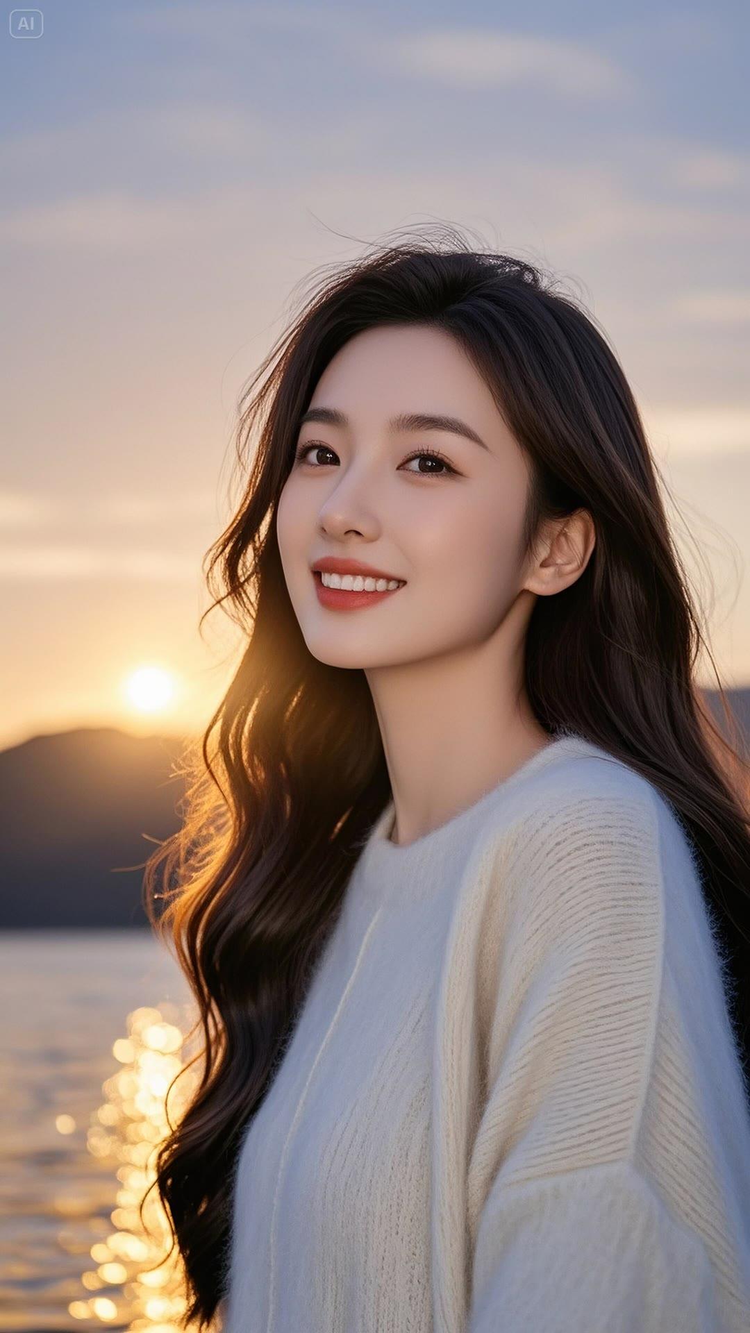 🌅 夕阳下的海滩,海风轻拂,🌊 与绝美的风景融为一体的她,在这人间仙境中流连