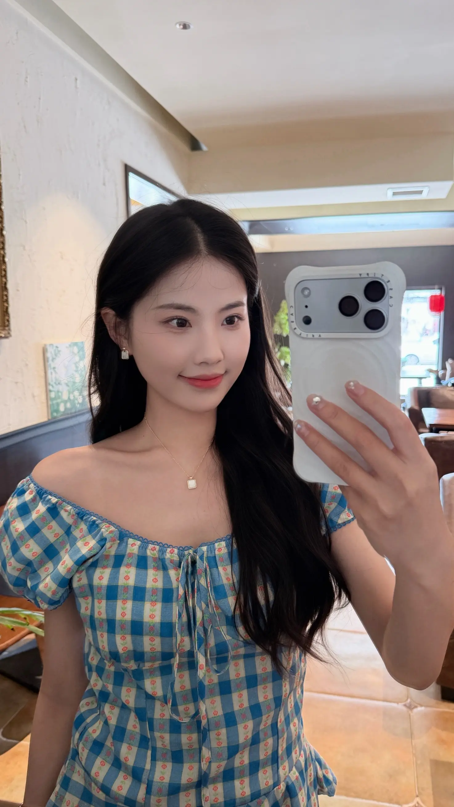 伊能静的儿子恩利再次穿起裙装,蓝色连衣裙搭配蓝色波点皮鞋,整体造型透着一股清新感