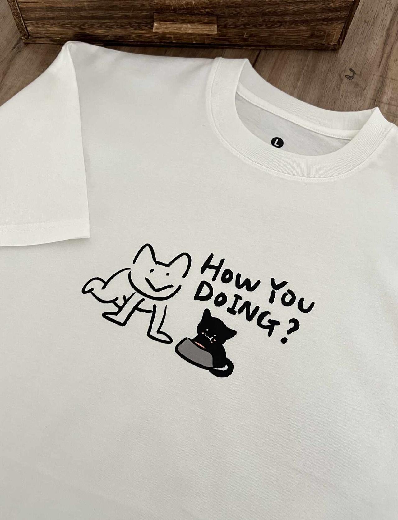 喵喵喵 你今天过得怎么样? 搞笑 梗图 猫猫这么可爱 创意设计 梗图系列 有趣 T恤 短袖
