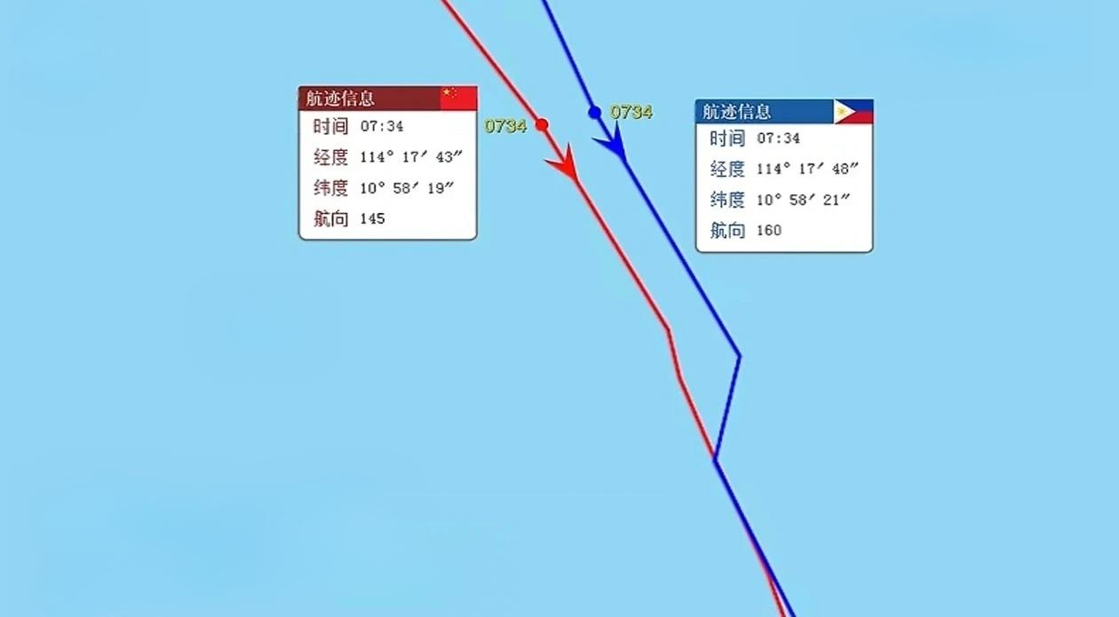 3月25日,在渚碧礁附近,菲律宾海军一艘名为“本格特”号的军舰和我们海军054A护卫舰“荆州舰”距离过近险些相撞。菲方指责中方舰艇采取不安全且不专业的机动动作。 咱们紧接着也公布了现场画面和轨迹信号,真相是菲律宾军舰恶意挑衅,突然改变航行路线,强行切进我们的航线,企图“碰瓷”。 希望以后我们再碰到类似的事件就要第一时间公布情况,占领舆论高地,我们是占理的一方,我们是受到恶意碰瓷的,不能给菲猴倒打一耙的机会。
