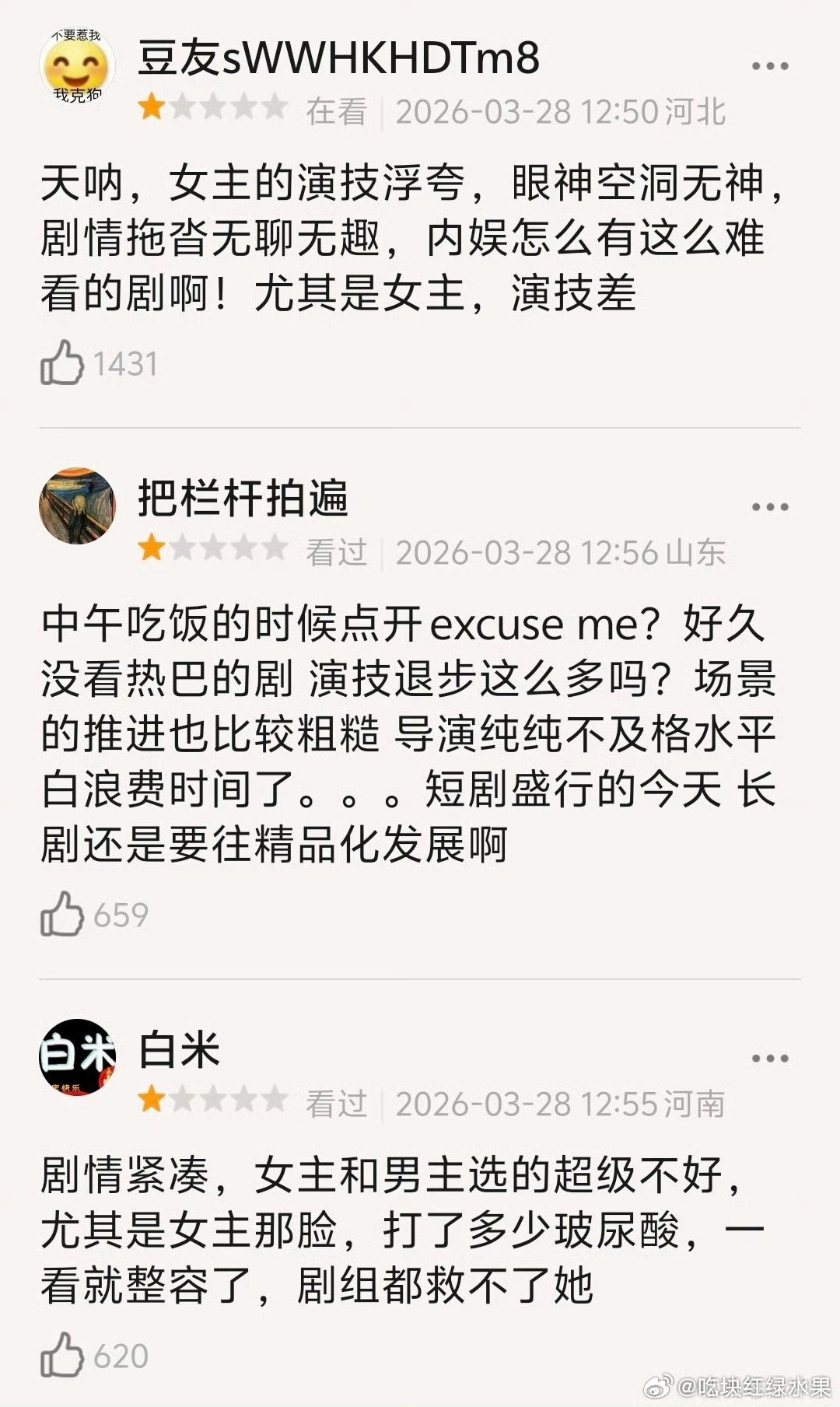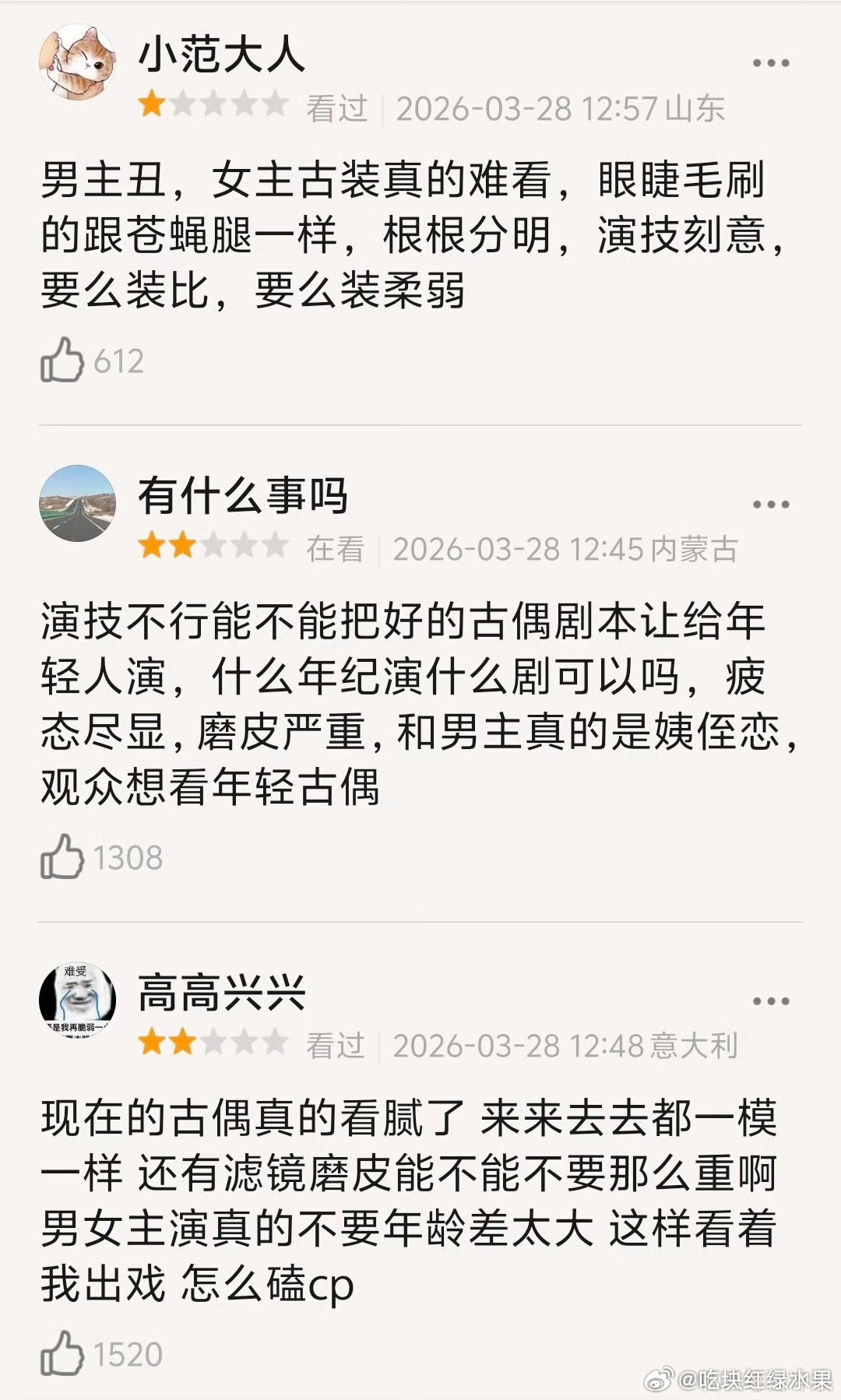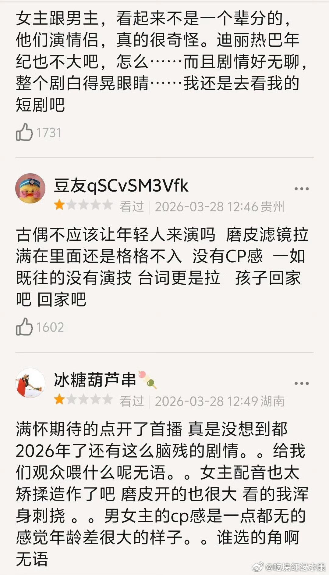 啥情况 白日提灯刚开播 db就出来了一大堆差评 有吐槽陈飞宇迪丽热巴演技差的 有说两个人年龄差大的 刚有人吐槽两人台词差的