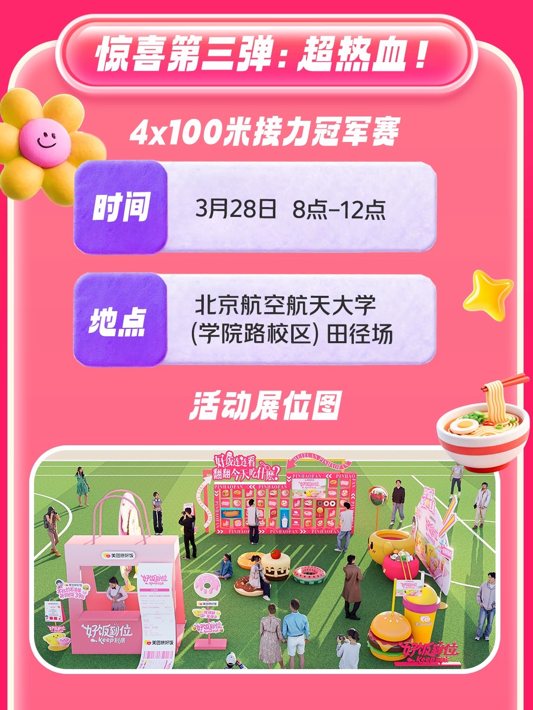 好饭到位Keep到底Keep×美团拼好饭太懂大学生!3月28日北航活动兼顾“吃好饭+练好身”,拼好饭3.9元起解决吃饭难题,Keep引导运动,精准戳中开学刚需!