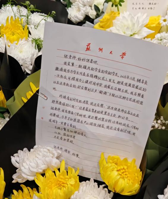 看哭了!这个学生给张雪峰送了一束花,她是第一批受到张雪峰助学的人,她还给张雪峰写了一封信。 不光这些学生,还有送花的外卖骑手,花店的老板,从外地过来送花的老乡,他们都在用各种方式缅怀张雪峰。 看信的字迹应该是一位女大学生写的,读完这封信,心里很受触动,这些受过帮助的学子,是最懂张雪峰的,也是最难过的! 他们懂他的不容易,懂他出身寒门却拼尽全力向上的韧劲,更懂他默默做事、不图虚名的真心。没人知道,这个总在镜头前语速飞快、帮普通家庭孩子避坑的人,背地里捐了超千万助学款。 他给母校设助学金,给家乡的寒门学子兜底学费,在苏州设立暖风助学计划,累计帮了两千多个孩子。 这些事,他从来没主动提过,没有炒作,没有摆拍,连捐款回执单都是偶尔被网友扒出来,大家才后知后觉。 写信的女学生,是第一批拿到他暖风助学金的人。信里没有华丽的辞藻,全是细碎的感恩和遗憾。 她说曾经有过离张雪峰最近的机会,却因为上课错过了捐赠仪式,总想着以后还有机会当面说谢谢,没想到再也没了可能。 她还说,一直在准备考研,盼着听他分析考研形势,那些没说出口的感谢,只能写在信里,伴着鲜花送到他公司楼下。 张雪峰走得太突然,3月24号在公司跑步时突发心源性猝死,年仅42岁。消息传开后,没有组织,没有号召,大家自发用自己的方式送他最后一程。 外卖骑手接到送花订单,送到现场时忍不住哽咽,说送了好几年外卖,第一次见这么多人为一个人送花。 苏州当地的花店,黄白菊一度售罄,老板们主动整理花束,不求利润,只希望能尽一份心意。还有远在杭州的东北老乡,特意赶过来,捧着花深深鞠躬,送别这位从家乡走出来的好心人。 很多人说,张雪峰只是个考研讲师,可只有受过他帮助、听过他建议的人才知道,他早已超出了讲师的范畴。 他出身寒微,深知贫困家庭的孩子,一句学费就能压垮整个家,所以他拼尽全力,用真金白银为孩子们铺路。他不搞形式主义,所有捐款都定向用于学生学费,不经过多余环节,直接送到最需要的人手里。 网上曾有过关于他的谣言,可他从不辩解太多,只用行动说话,那些被他帮助过的学子,那些自发送花的普通人,都是他最好的证明。 没有惊天动地的壮举,没有刻意煽情的宣传,张雪峰用一辈子的坚守,温暖了无数寒门学子的求学路。 他走了,可他帮过的那些孩子,会带着他的善意继续前行,会把这份温暖传递下去。公司楼下的鲜花总会凋谢,但大家对他的怀念,永远不会褪色。张老师,一路走好。