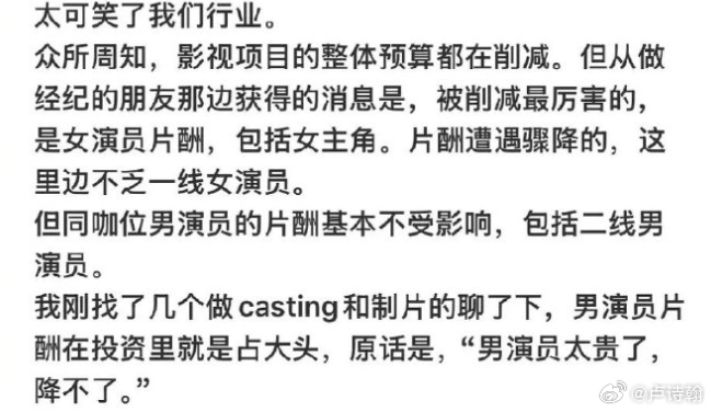 有人认为加男演员是有利女性,有人认为加女演员才是有利女性,这两个诉求无法同时成立。