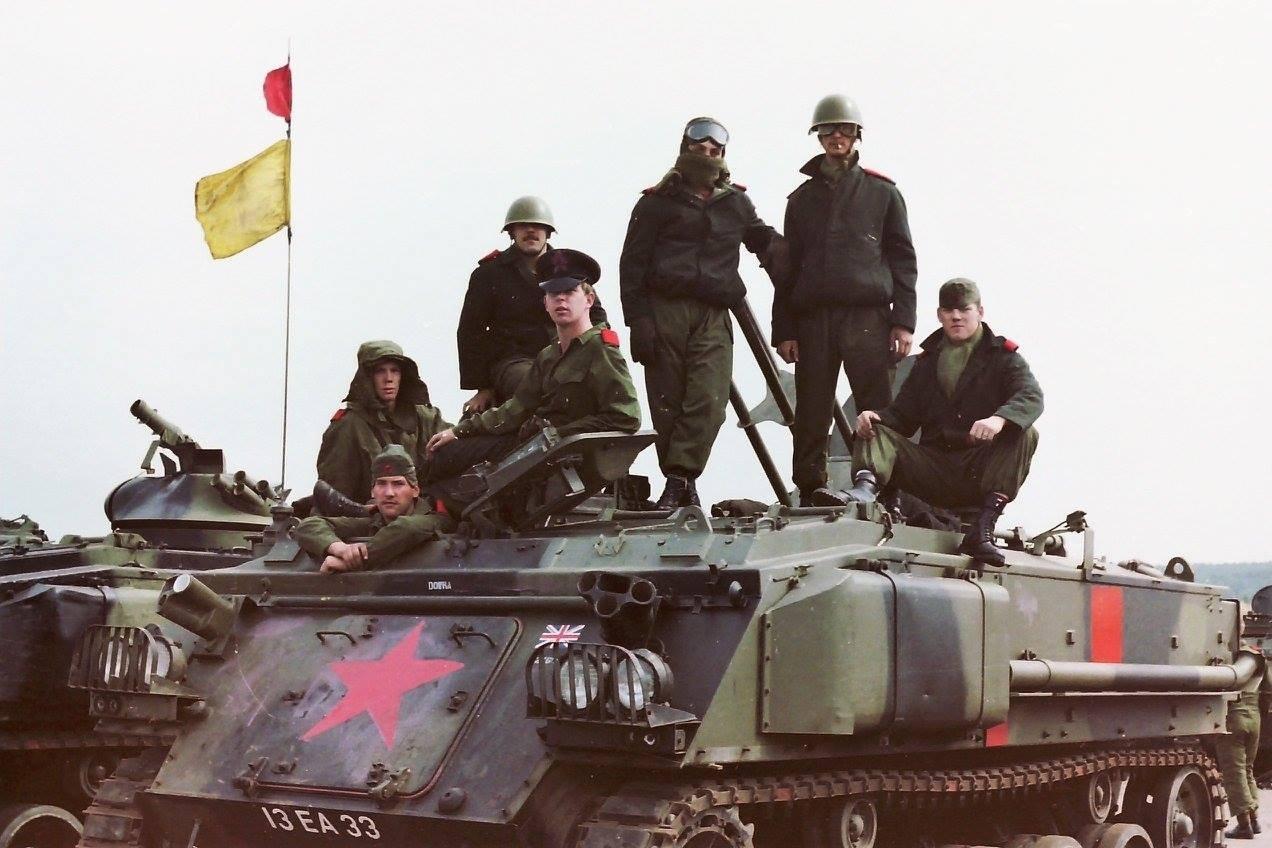 在 20 世纪 80 年代的模拟对抗演习中,英军 FV432 装甲运兵车常被蓝方部队用作假想敌(OPFOR)装备,用以模拟苏军的履带式装甲输送车。这种改装与扮演方式,是北约国家在冷战时期常用的训练手段。通过将本国装备涂装、标识改为苏军风格,并模拟其战术动作,能够让参演部队更贴近实战环境,熟悉华约装甲车辆的作战特点,提升应对苏军机械化部队的实战能力。