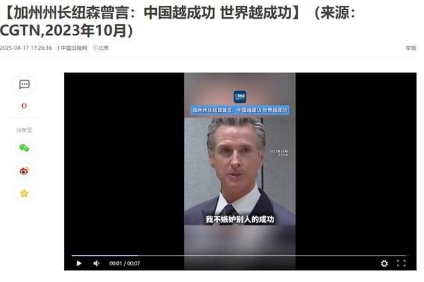 加州州长的一句话震动全球!加州州长纽森曾直言:“不要眼红中国的成功!中国越强大,世界就越繁荣!不要嫉妒中国的成就,因为只有不眼红,才会让全球更辉煌!”纽森敢这么说,完全是因为中国是加州的“钱袋子”。去年光硅谷卖给中国的芯片和软件就挣了870 亿美元,当地的杏仁、车厘子的出口更是离不开中国市场,疫情期间我国还买走了加州60%的过剩农产品,帮农场主们保住了裤腰带。 纽森公开表示加州不该对中国的发展成果抱有负面看法,因为中国实力起来对全球都有好处。这话在美国政界引起不少讨论,当时联邦把中国看成战略竞争对手,纽森的说法和首都主流方向不太一样。他敢这么讲,核心就是加州和中国的经贸联系太深,背后全是实实在在的经济账。 2024年加州对华贸易数据很有说服力,硅谷的芯片巨头单靠对华出口就拿到数百亿美元收入,撑起了硅谷数万个高薪岗位,连带着周边产业都跟着受益。 中国市场也是加州农产品的重要出路,不管是杏仁还是车厘子,中国消费者的需求直接关系着当地果农的收入,没了中国市场,不少种植园都会受影响。 最让加州人记着中国好的还是2020年疫情期间。当时美国本土市场需求暴跌,加州农场的果蔬堆得满地都是,眼看就要烂在地里。 中国市场伸出援手,买走了60%的过剩农产品,直接保住了两万多个农业岗位,让上千户农场主避免破产,不少农户都说,是中国市场救了他们全家的生计。 纽森敢跟联邦唱反调,更关键的是加州经济早就和中国绑在了一起。2024年加州对华出口总额达1370亿美元,占全美对华贸易的22%,全州每7个就业岗位就有1个和对华贸易相关。 这些数据是加州财政部2025年初的官方报告明确记载的,纽森心里清楚,跟着联邦搞“脱钩断链”,最先受伤的就是加州的企业和老百姓。 这里的矛盾很突出,2024到2025年,联邦一边出台芯片、软件对华出口限制,一边要求加州配合。 2025年5月,联邦突然限制EDA软件对华出口,断了硅谷不少企业的财路,英伟达为了继续出口,不得不把中国市场AI芯片销售收入的15%上缴联邦,这种做法让加州企业怨声载道,纽森也直接吐槽联邦政策“损人不利己”。 更让人意外的是,2025年4月纽森直接让加州把联邦告上法庭,理由是联邦的关税和出口管制违反宪法、越权。起诉状里的数据显示,联邦政策让加州2025年一季度对华出口减少43%,损失超320亿美元,半导体行业失业人数增加1.8万。 这场官司引发轩然大波,支持他的人说他为地方利益挺身而出,反对的人则骂他“叛徒”。 纽森的心思很明白,2023年10月他亲自带队访华,就是为了巩固和中国的经贸联系。他说的“中国越成功,世界就越成功”,更多是说给美国强硬派和加州民众听的,提醒大家跟着联邦的错误政策走没有好结果。 2025年矛盾更尖锐,联邦8月又限制加州先进制程芯片对华出口,直接击中硅谷软肋,相关企业股价暴跌,从业者纷纷指责联邦不顾地方死活。纽森随即表态,加州不会跟着联邦走,还会想办法帮助本地企业拓展中国市场。 2025年11月,纽森接受采访时说,家里很多日用品都是中国制造,质量好还便宜,普通美国人根本离不开。他举例说,加州中产家庭每月进口商品支出超600美元,中国商品占近一半,要是脱钩,生活成本至少涨30%,这话也让不少美国人开始反思联邦政策。 纽森的做法还引发了美国“州权”和“联邦权”的争论。民调显示,加州63%的选民支持他的对华立场,而美国中部不少州支持联邦政策的比例很高,这背后就是不同地区的利益分歧——加州靠高科技和农产品出口,自然希望和中国保持良好关系。 2025年加州经济增速降到近十年最低的1.8%,但对华出口却逆势增长18%,当年吸引的中国投资也比2024年增长23%,为加州创造了八千多个新岗位,正是和中国的经贸联系,让加州稳住了经济基本盘。 反观联邦政策,2025年的对华限制让美国半导体行业损失2700亿美元市场份额,反而让中国企业扩大了全球占有率。美国半导体行业协会也承认,出口管制没遏制住中国芯片产业,反而让美国企业丢了市场。 纽森这么做,也有自己的政治考量,他有总统梦,频繁在国际场合赞扬中国的清洁能源政策,就是想塑造“理性务实”的形象,为2028年总统大选铺路。 不过纽森的路不好走,有人批评他“分化美国”,还有共和党议员提议剥夺加州的联邦拨款。面对压力,纽森回应说,他不是对抗联邦,而是保护加州人民的利益,美国的强大应该靠经济繁荣,而不是和中国对抗。 这些矛盾说到底都是利益问题,纽森代表加州的经济利益,联邦考虑的是所谓“国家安全”,出发点不同自然有冲突。最新民调显示,加州58%的选民支持纽森,而全美支持联邦政策的比例达54%,这也反映出美国社会在对华政策上的分裂。