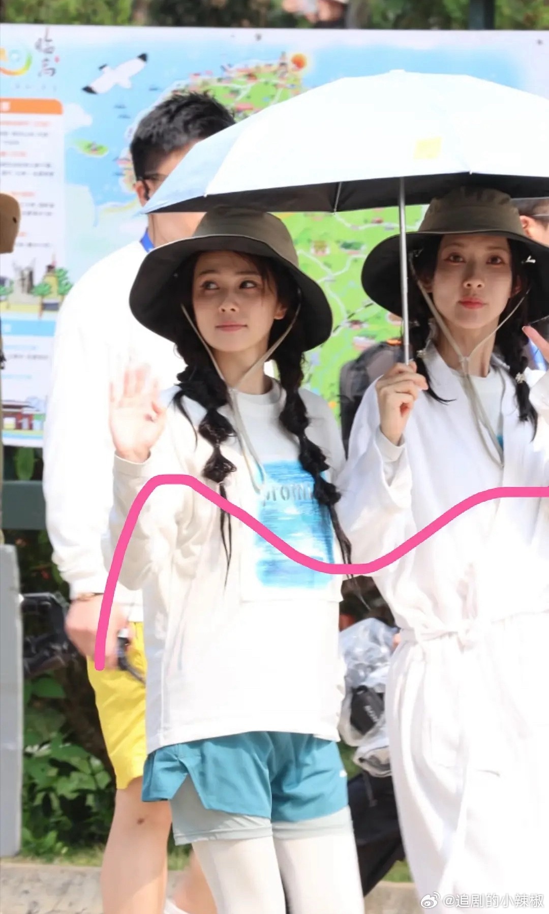 白鹿奔跑吧上班路透双马尾活力满满的女大好元气的菠萝,玩的开心,期待节目播出白鹿白