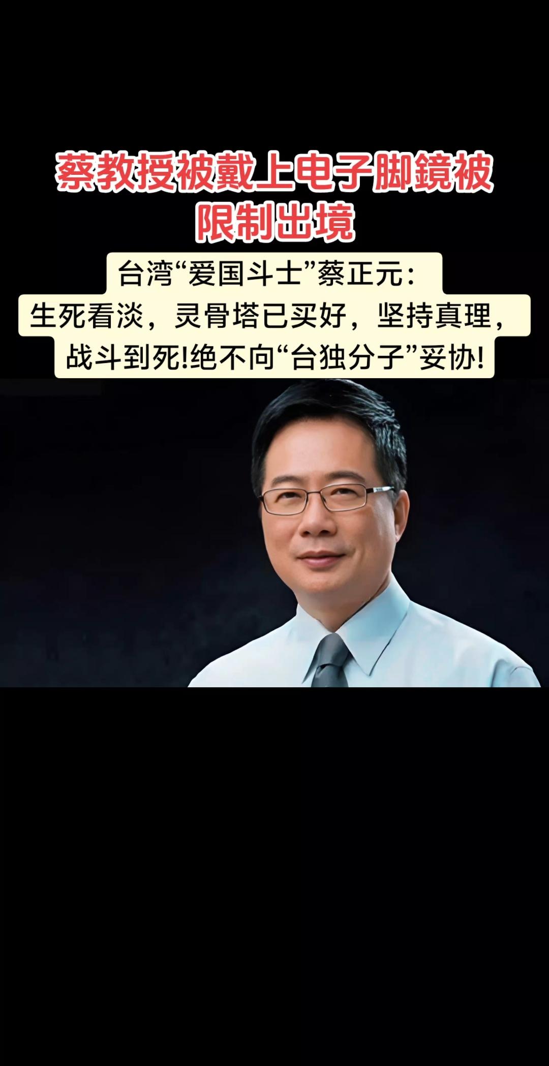 中国台湾媒体人蔡正元被判刑3年6个月这事儿,蓝营及统派都觉得是政治迫害。蔡正元一直是坚定的统派,平时在媒体上直言两岸应统一,戳中了“台独”分子的痛处。 在台湾,“台独”势力把控着司法等诸多领域。蔡正元因一些所谓“罪名”入狱,很可能就是“台独”势力的阴谋。他们妄图通过这种方式打压统派声音,维护其分裂行径。可这根本阻挡不了两岸统一的大势,统派力量也不会被轻易打倒,相信未来正义会到来,两岸统一的那一天终会实现。