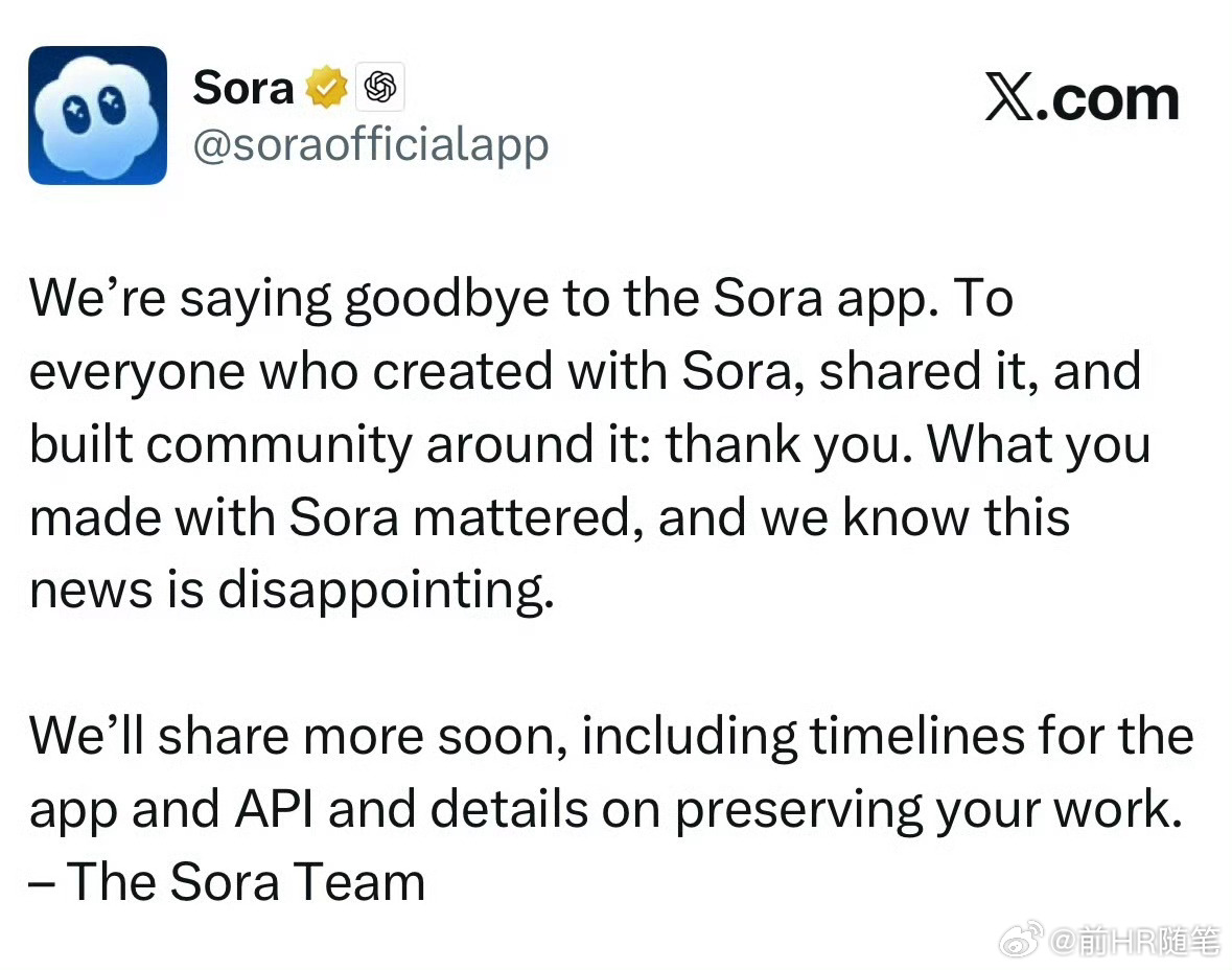 美国OpenAI的Sora关闭了,当年跪着叫爹一样的,现在是不是很打脸?