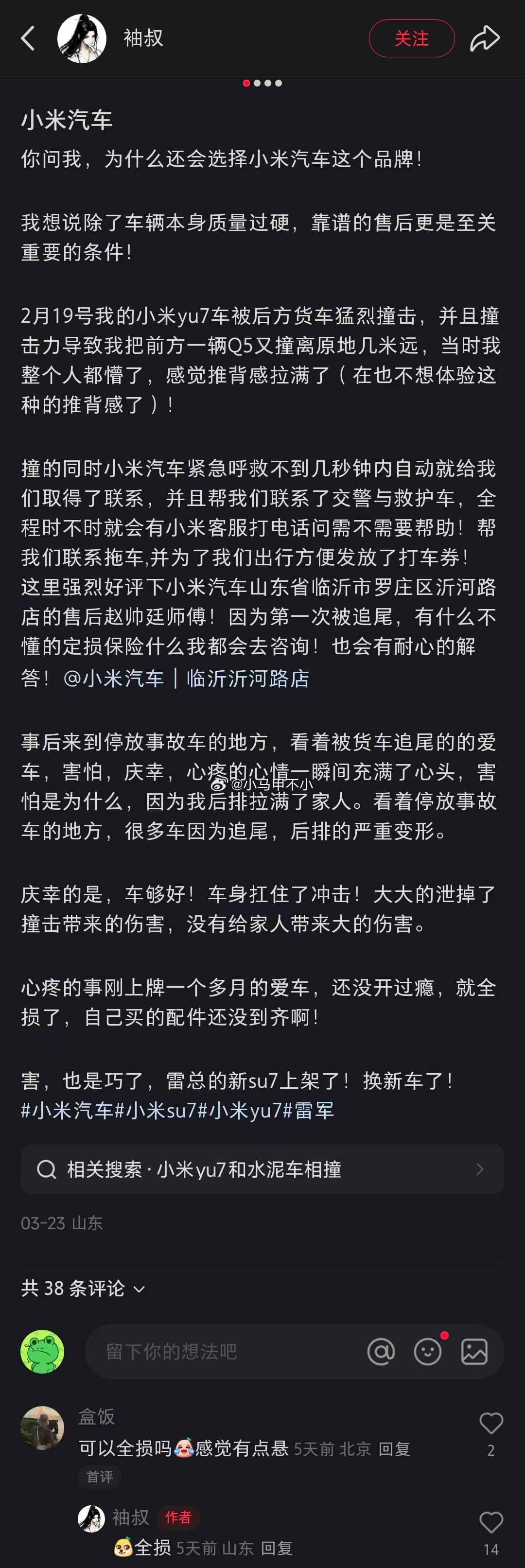 一位遭遇高速货车追尾全损车主的分享:车辆本身质量过硬,还有靠谱的售后。