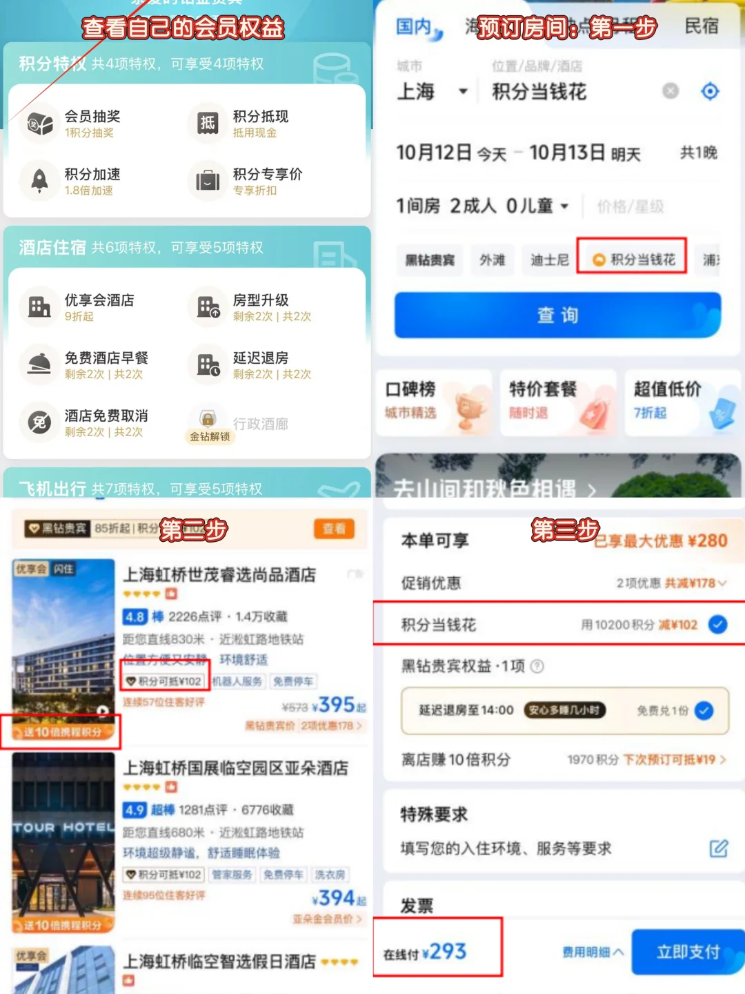 这次出去玩的机票和酒店我都是在携程上订的,因为携程会员积分抵钱!!!