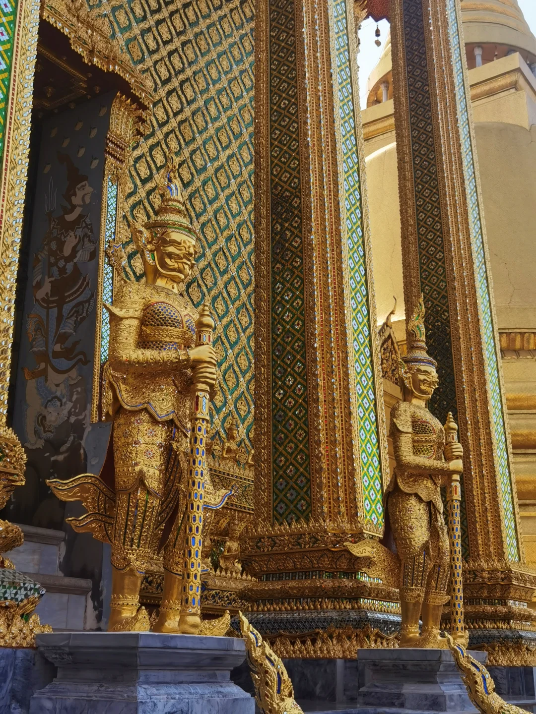 - 贴士:必须穿过膝下装+有袖上衣(男女都是),不符合的话入口有卖灯笼裤的商贩(150泰铢可讲价) ;门票500泰铢,含大皇宫、玉佛寺等,小票别丢!