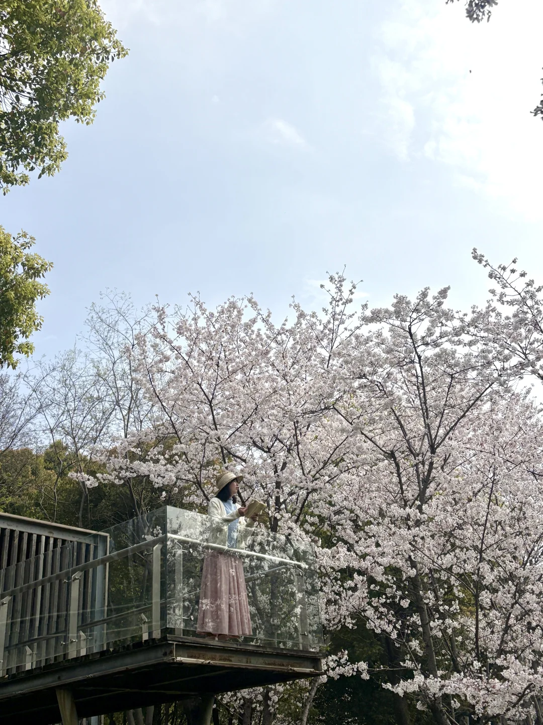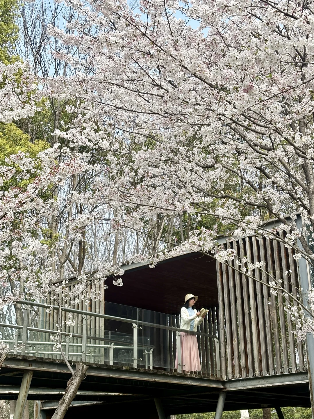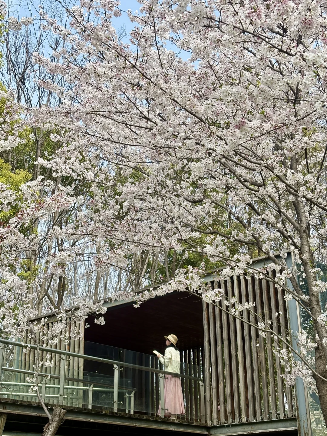 武汉这个樱花观景台太浪漫了 已经到了盛花期还在飘花瓣美哭 没什么人还可以从观景台往下俯拍 另外白房子附近也有几颗樱花树很美 📍导航园博园小石潭(不清楚可以问我)