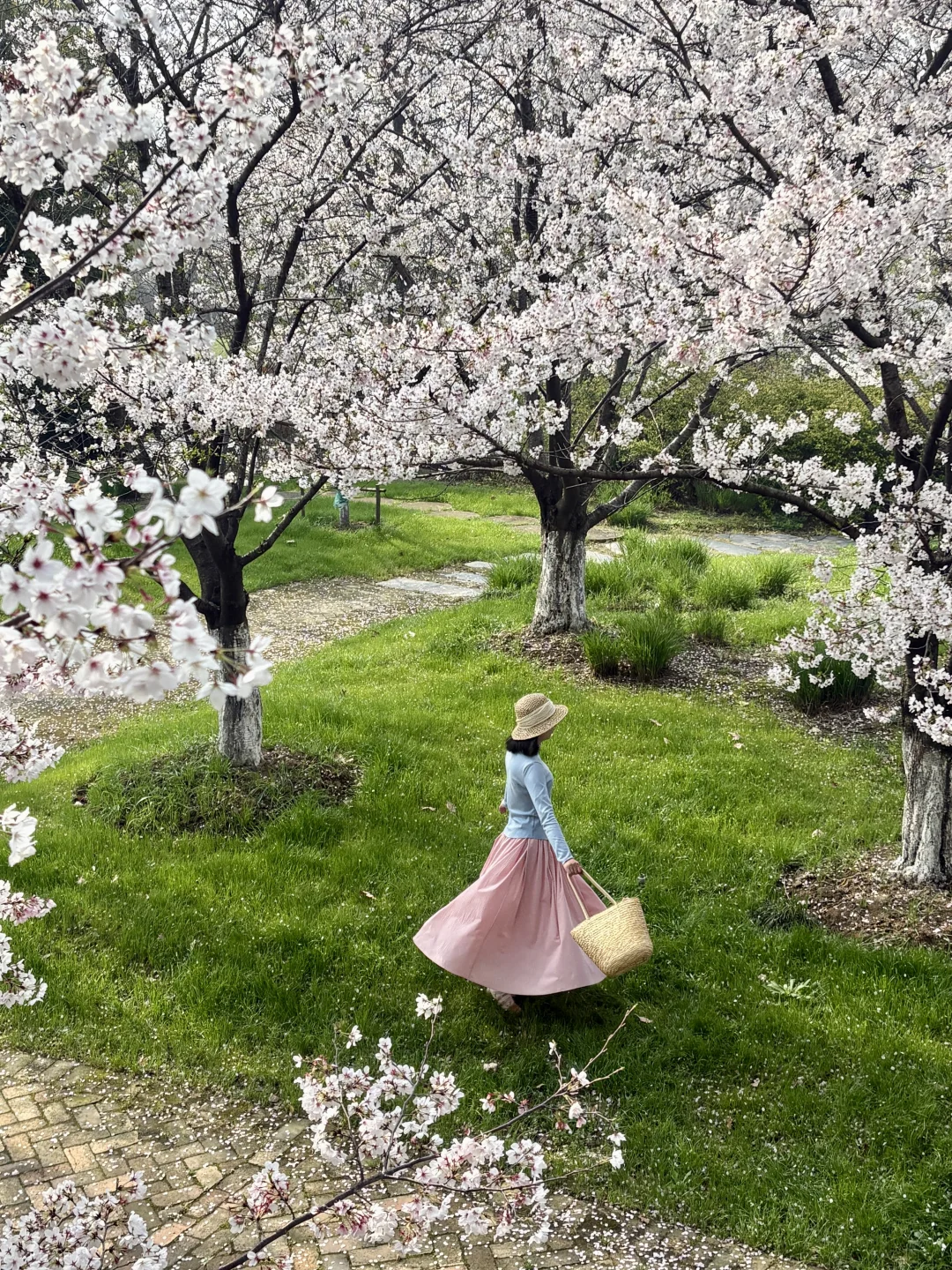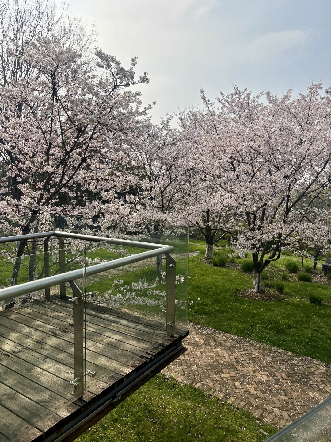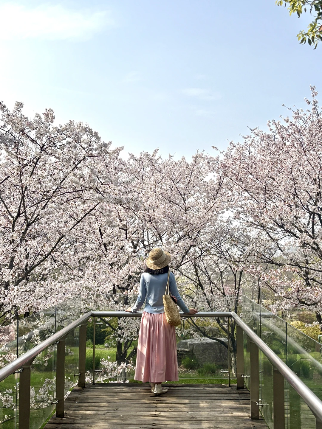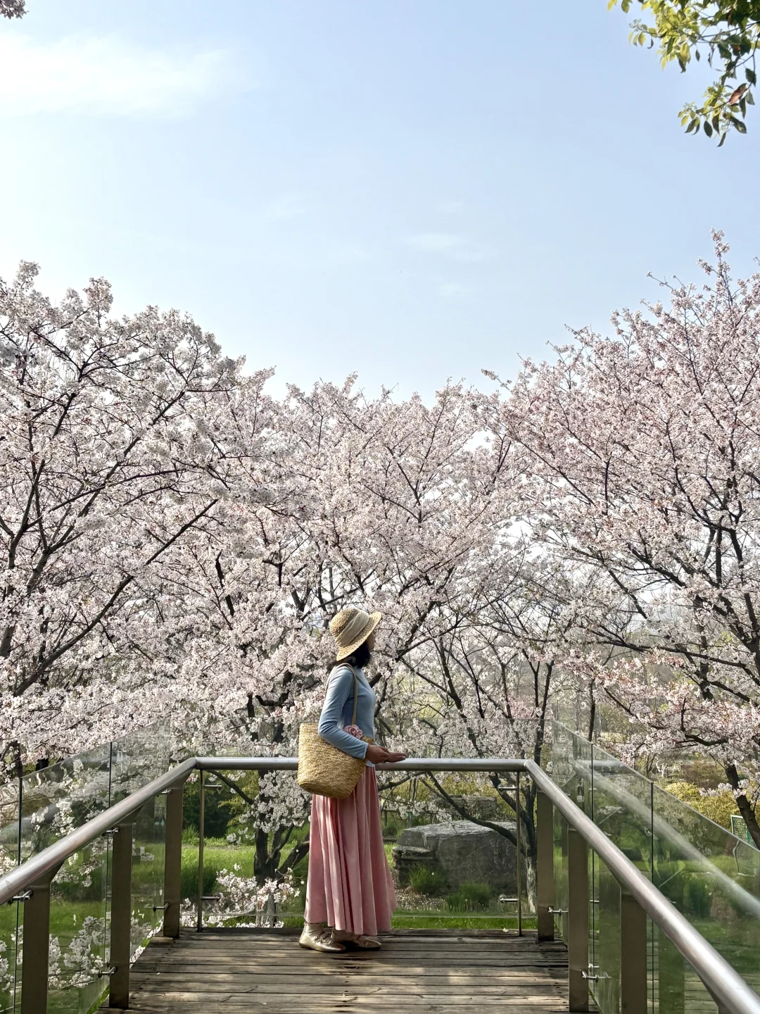 武汉这个樱花观景台太浪漫了 已经到了盛花期还在飘花瓣美哭 没什么人还可以从观景台往下俯拍 另外白房子附近也有几颗樱花树很美 📍导航园博园小石潭(不清楚可以问我)