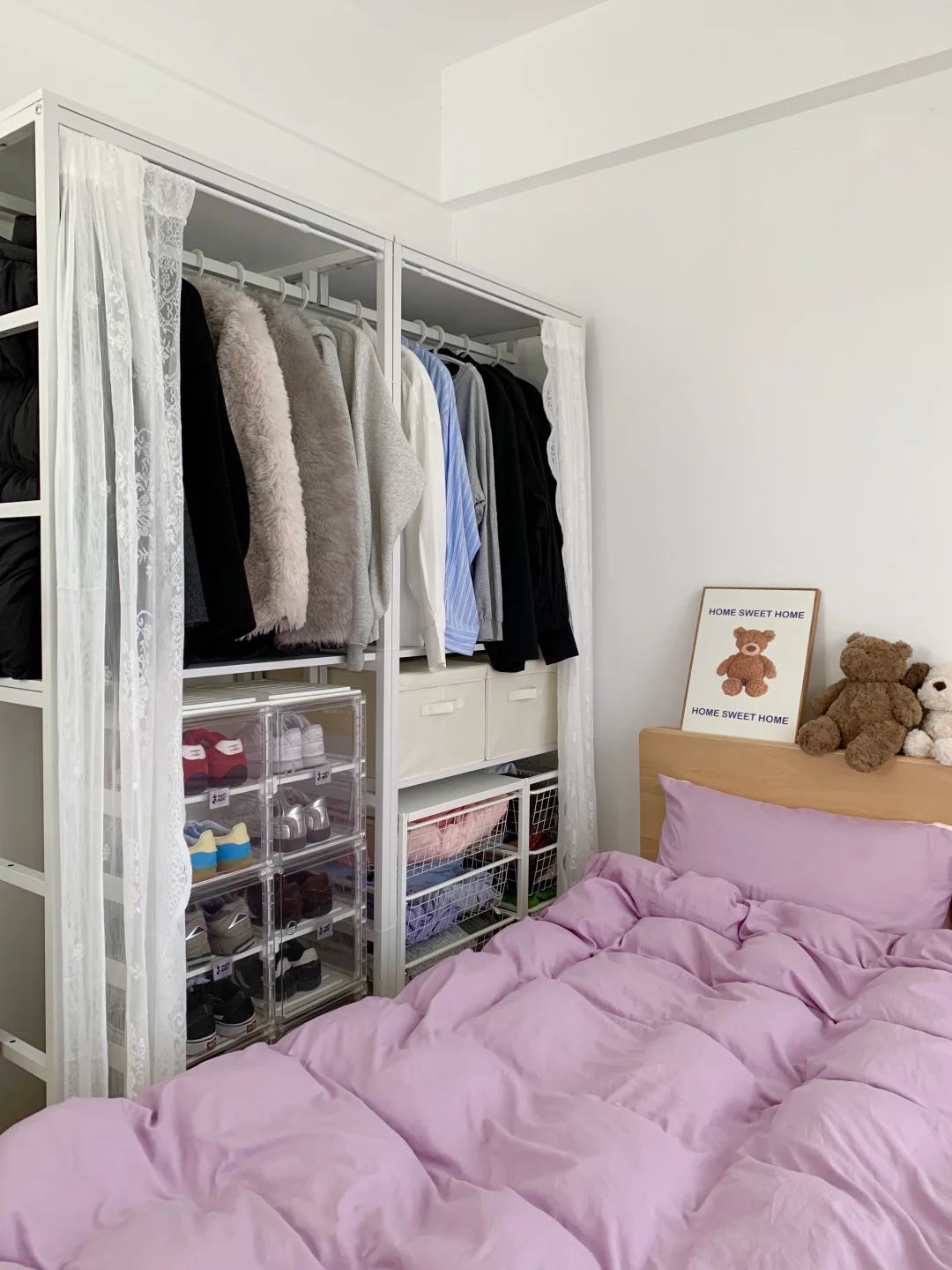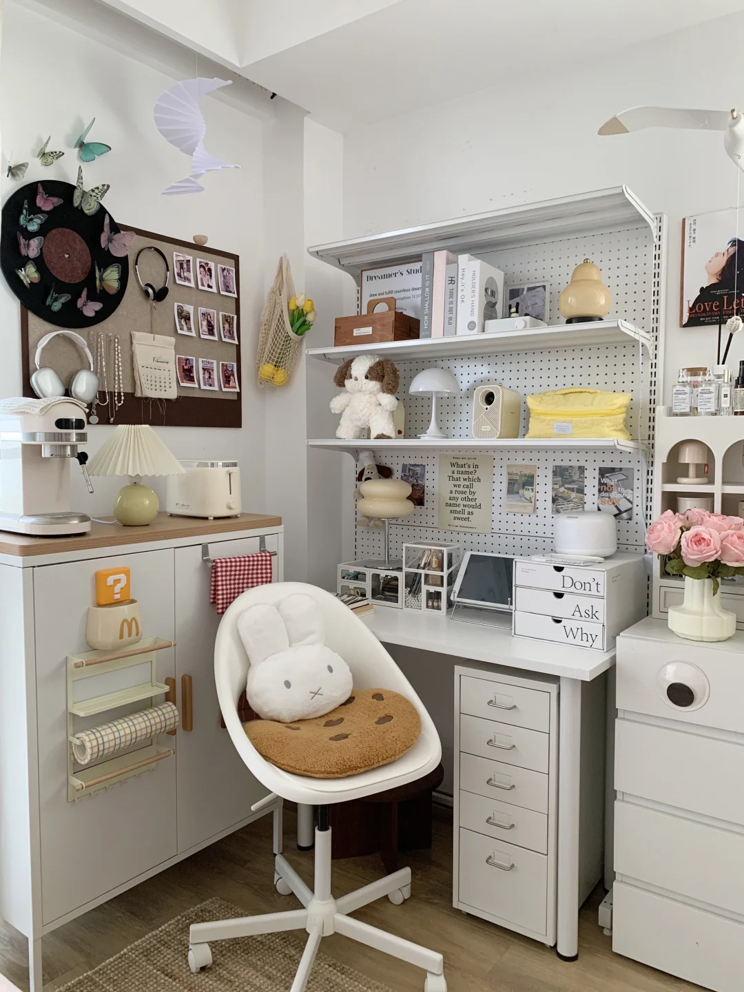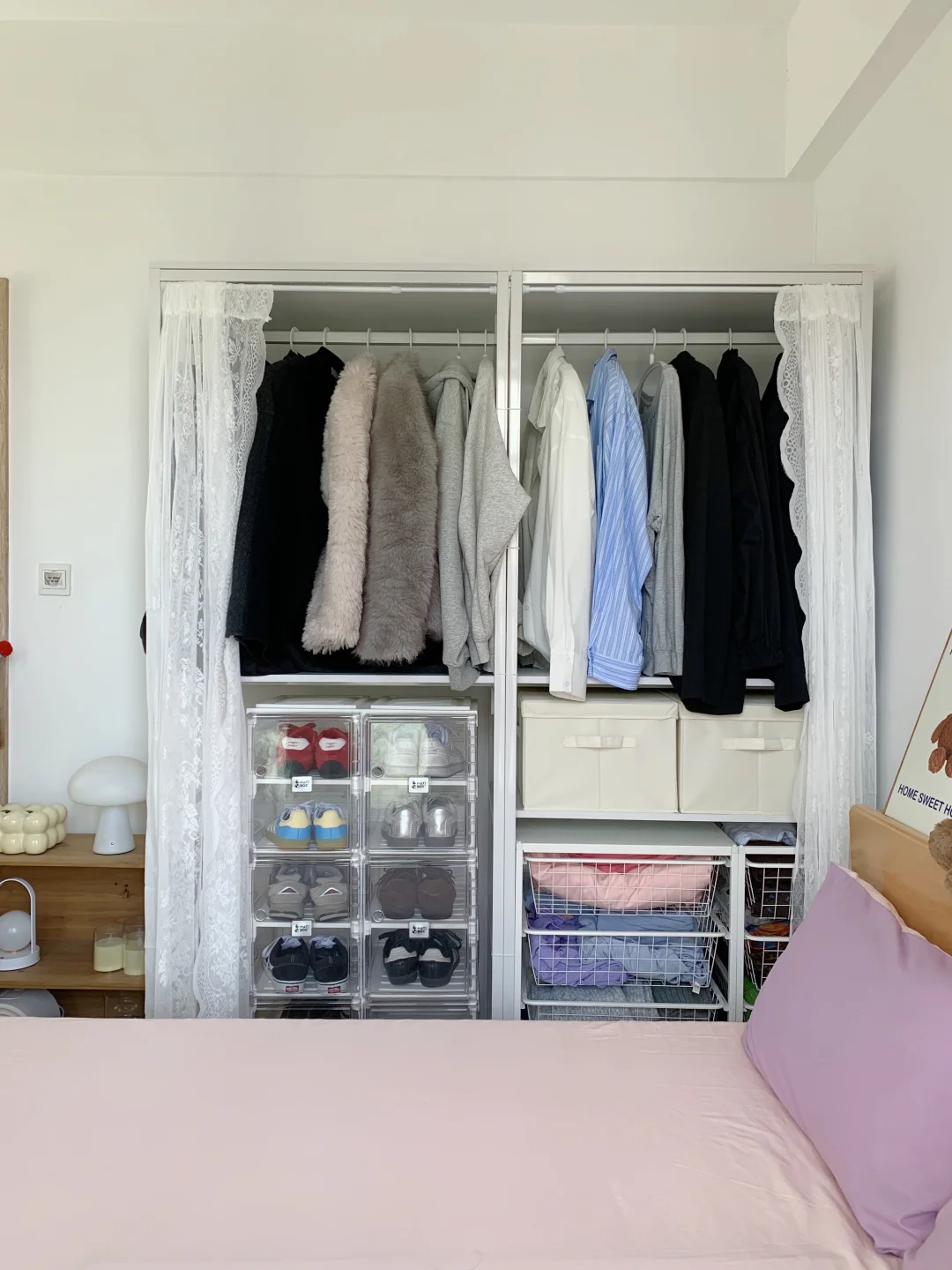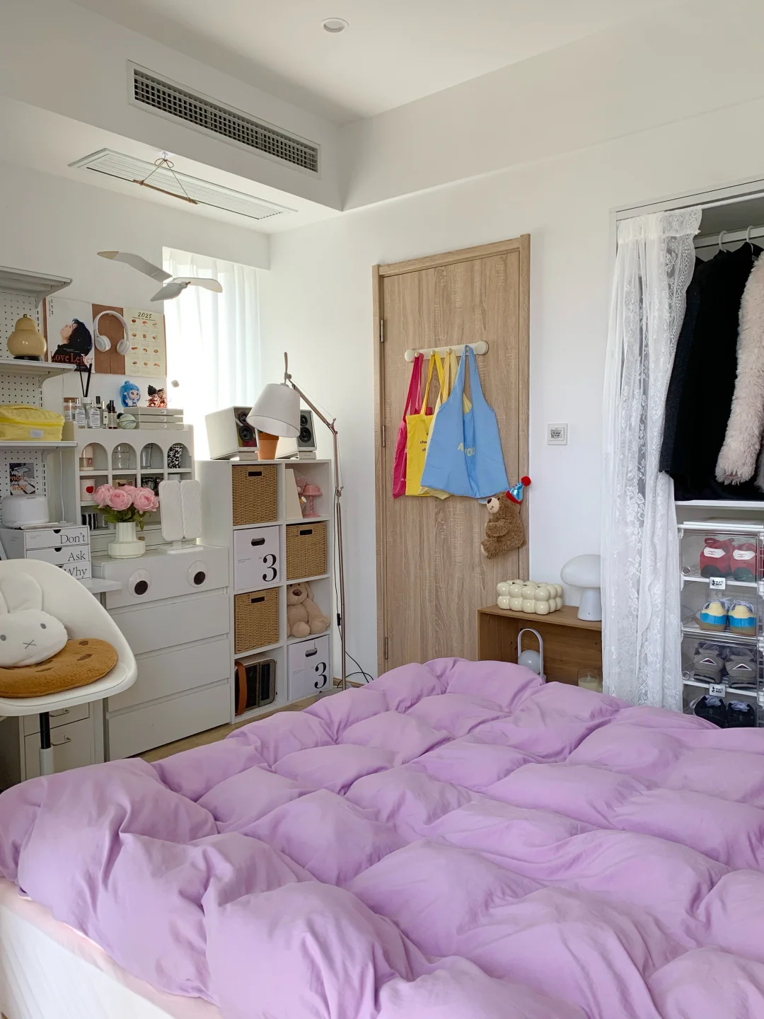 给小卧室换了一下布置,小小的面积有睡眠区,收纳区,书桌区,卧室里都是自己喜欢的风格~