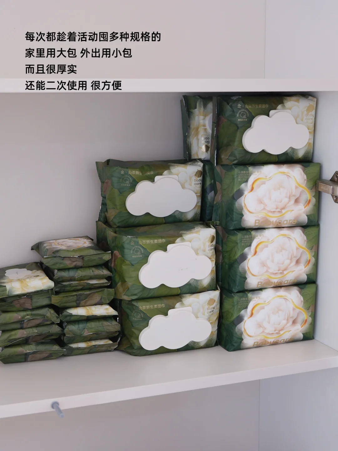 最近又囤了一波Babycare山茶系列的湿巾和绵柔巾