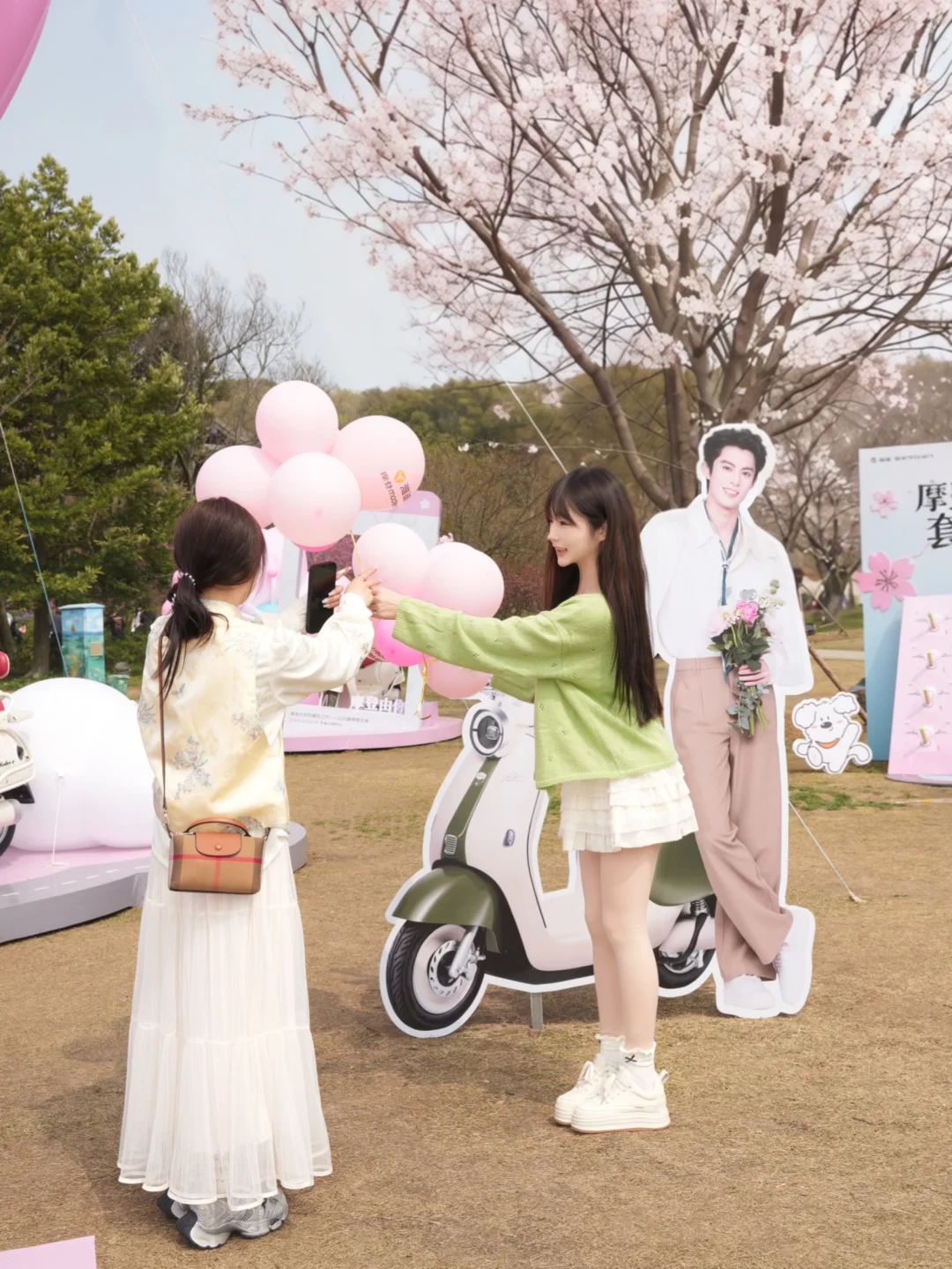 春天这个适合出游的美丽季节怎么能少得了雅迪电动车这个骑行好搭子呢~ 最近正值樱花🌸盛开之际来鼋头渚赏樱看到雅迪摩登旗舰新品的展台被它的高颜值吸引住了~金属车身时尚质感又不失青春活力,不得不说雅迪还是太懂年轻人的审美啦!周围还布置了粉色的气球和樱花🌸,浪漫氛围拉满,很适合穿得美美的来打卡拍照📷。 如果说樱花是写给春天的浪漫情书,那么骑行就是给春天的热烈告白~开满樱花的鼋头渚感觉空气里都充满甜甜的味道,就用这美丽的邂逅打开一个初恋般的春天吧!雅迪摩登摩登有你一骑樱春天