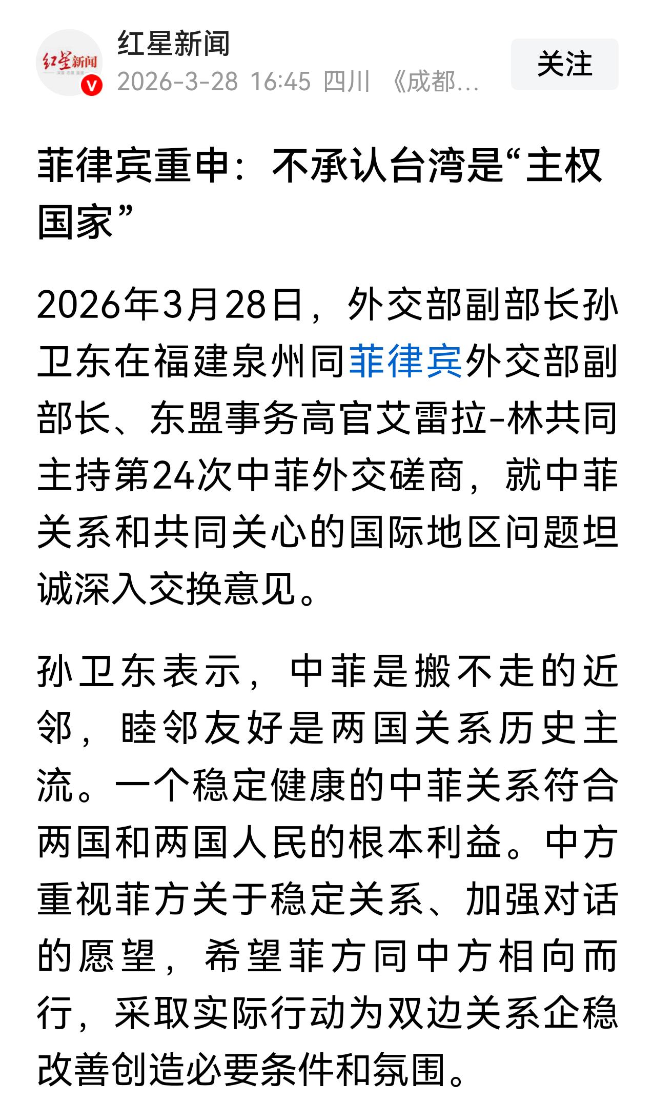 菲律宾的操作太骚了。总统说中国很善良,帮助菲律宾很多,紧接着来华的代表团就重申一个中国政策。最近菲律宾确实有求于中国。 一,菲石油进口依赖98%,95%来自中东。中东冲突导致航运受阻、油价暴涨。其国内汽油仅够53天、柴油46天、航油39天。老百姓抢不到成品油,部分航班已经停飞,马科斯已经宣布国家能源紧急状态。 二,菲化肥95%依赖进口,中国是最大供应商。春耕窗口期(5月)库存仅够用到5月,缺肥将致粮食减产20%-30%、粮价翻倍。全球化肥涨价、中国出口收紧,只有中国能稳定供货。 菲律宾不仅求中国解决眼下的困难,还提出重启中菲南海联合油气开发,这是想长期合作。以前菲律宾仗着美国军事保护,现在也看明白美国靠不住,韩国的萨德说撤就撤,菲律宾还不如韩国。所以,菲律宾想靠拢了。 估计中国会给面子,毕竟是域内国家,不太可能见死不救。不过,给面子也是有条件的,要看诚意。不能面子给你了,你还不守规矩。救急可以,不能一边求我一边惹我。要让菲律宾明白,对抗是没有出路的。