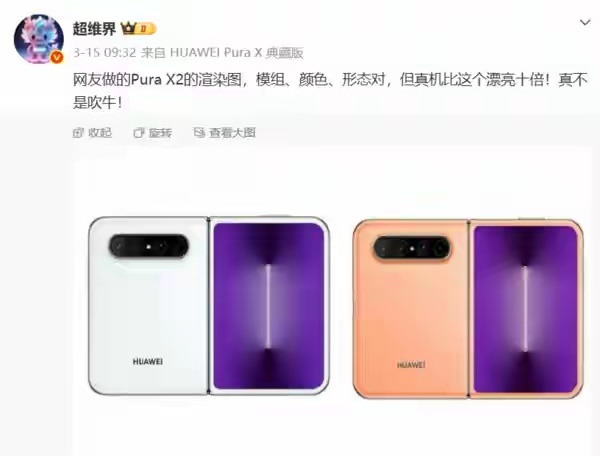 曝华为PuraX新机将更名新一代不再叫Pura X2了,新名字要4月初才揭晓,网友已经开始猜“Pura Fold”了。全球首款横向大尺寸扩折叠,内屏7.69英寸接近小平板,外屏5.5英寸更实用,左右开合设计,软件适配还能兼容平板比例,省了不少事。这已经不是简单迭代了,直接是折叠家族新分支吧?