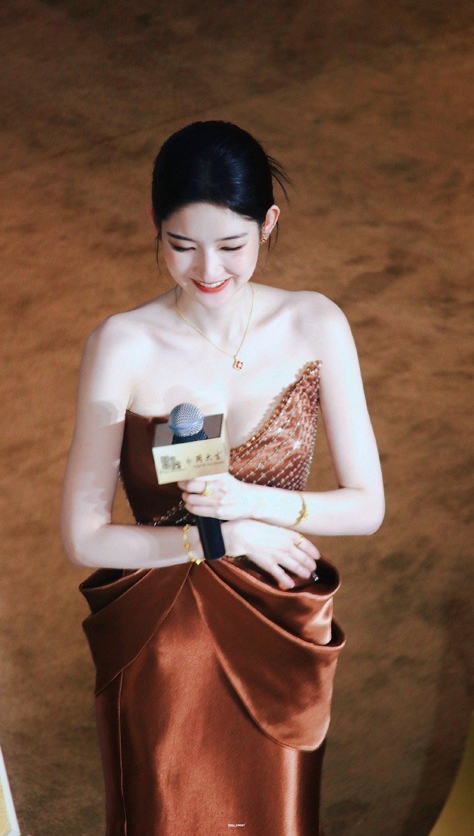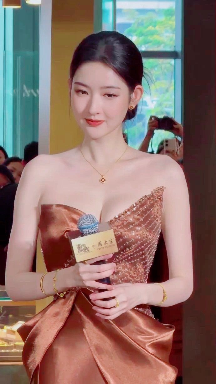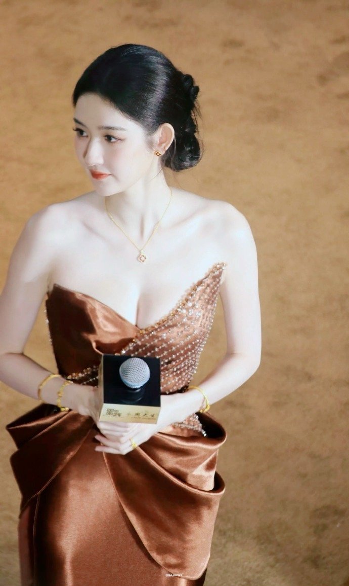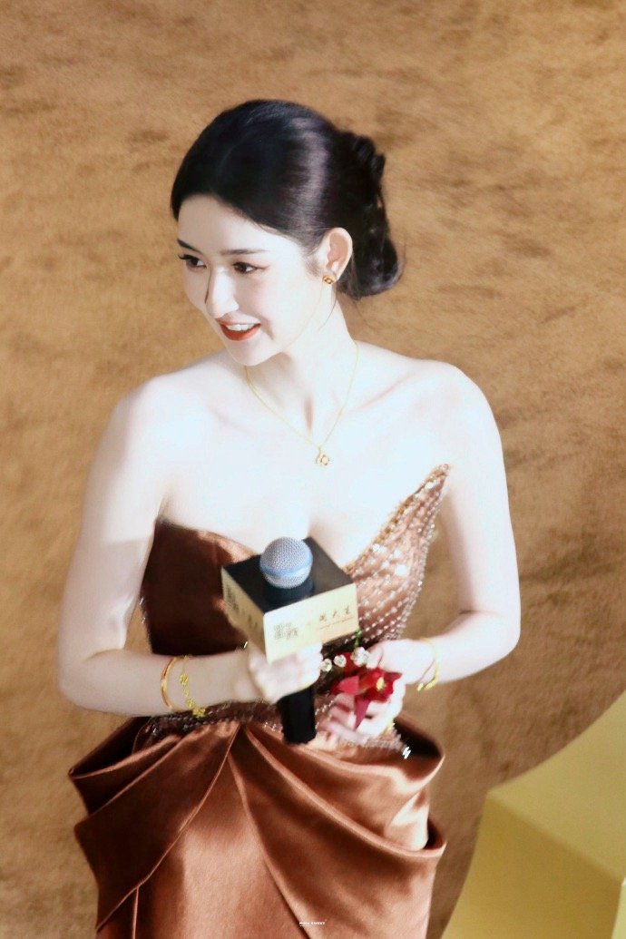这组图看下来,王玉雯真的太适合这种温柔贵气的路线了。焦糖缎面礼裙衬得整个人又软又贵,盘发露脸完全不挑角度,连怼脸拍都美得没死角。说真的,比起千篇一律的夸张造型,这种低调又有质感的风格,反而更能看出她的气质有多能打。
