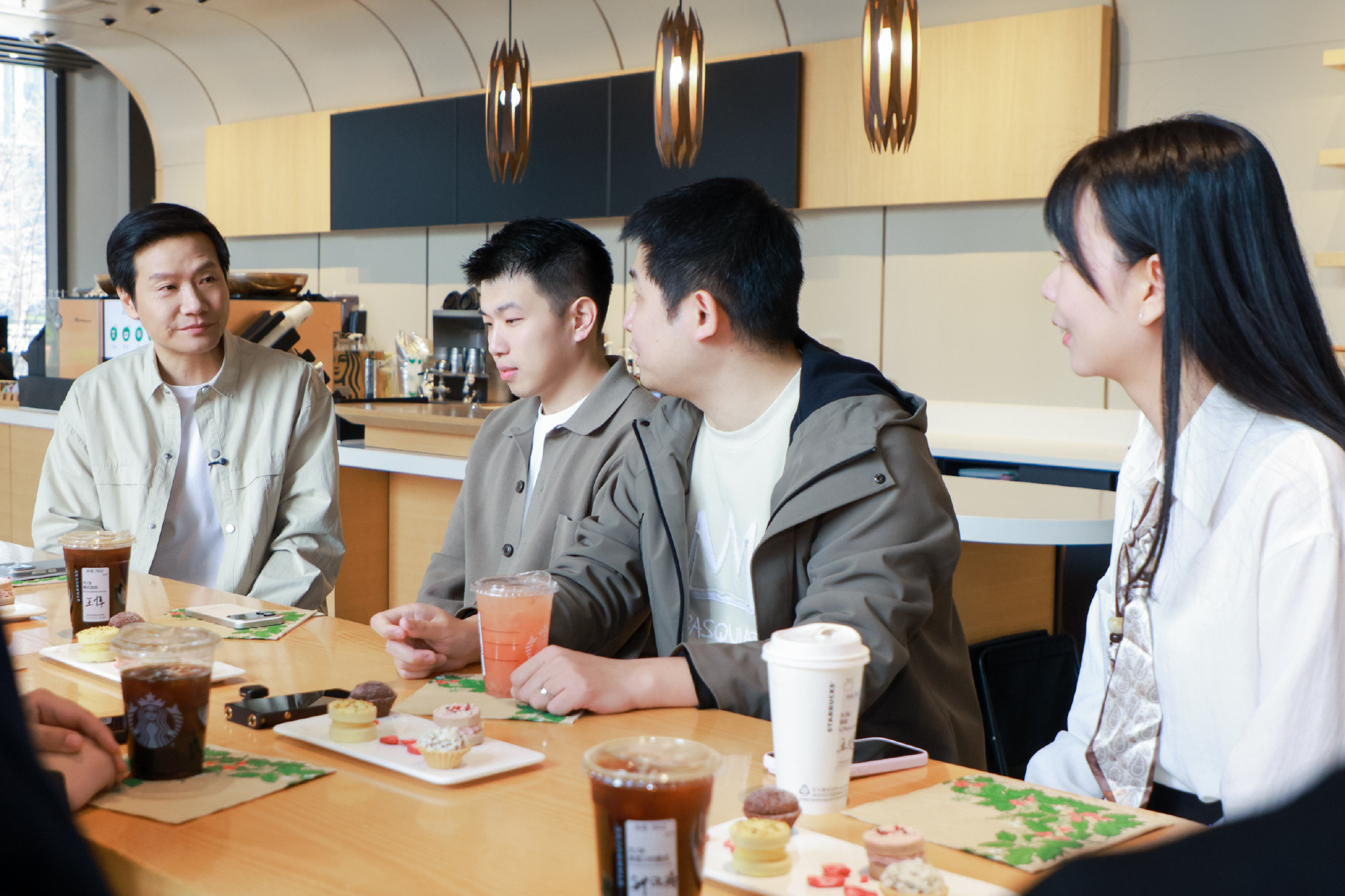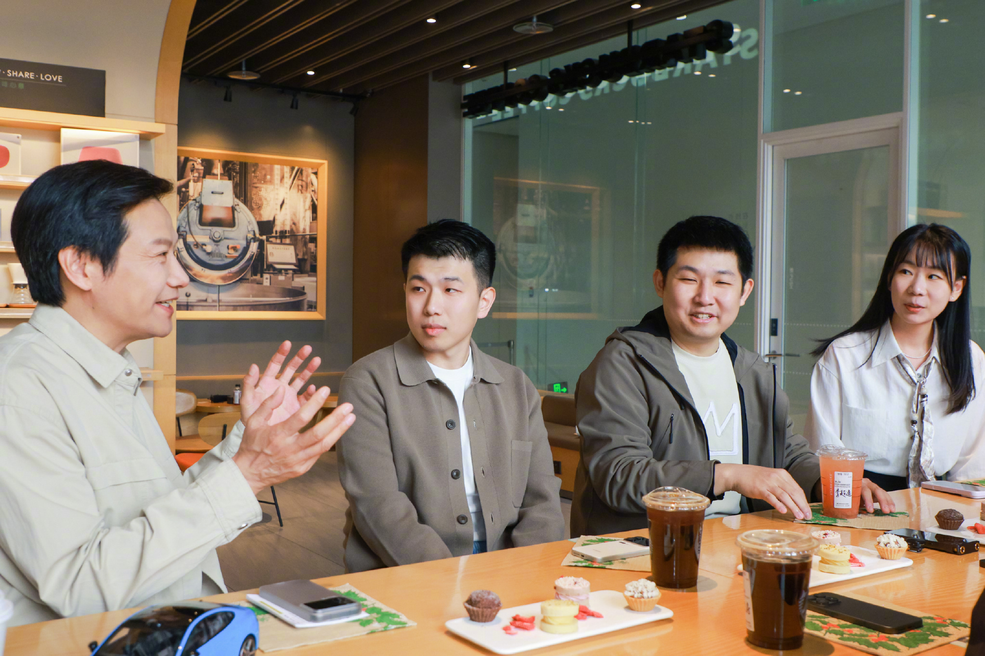今天下午(3月28日)雷总邀请了几位新SU7车主来到小米园区边喝咖啡边交流,他们都来自各行各业,有高中物理老师、金融行业从业者,甚至还有飞行员。