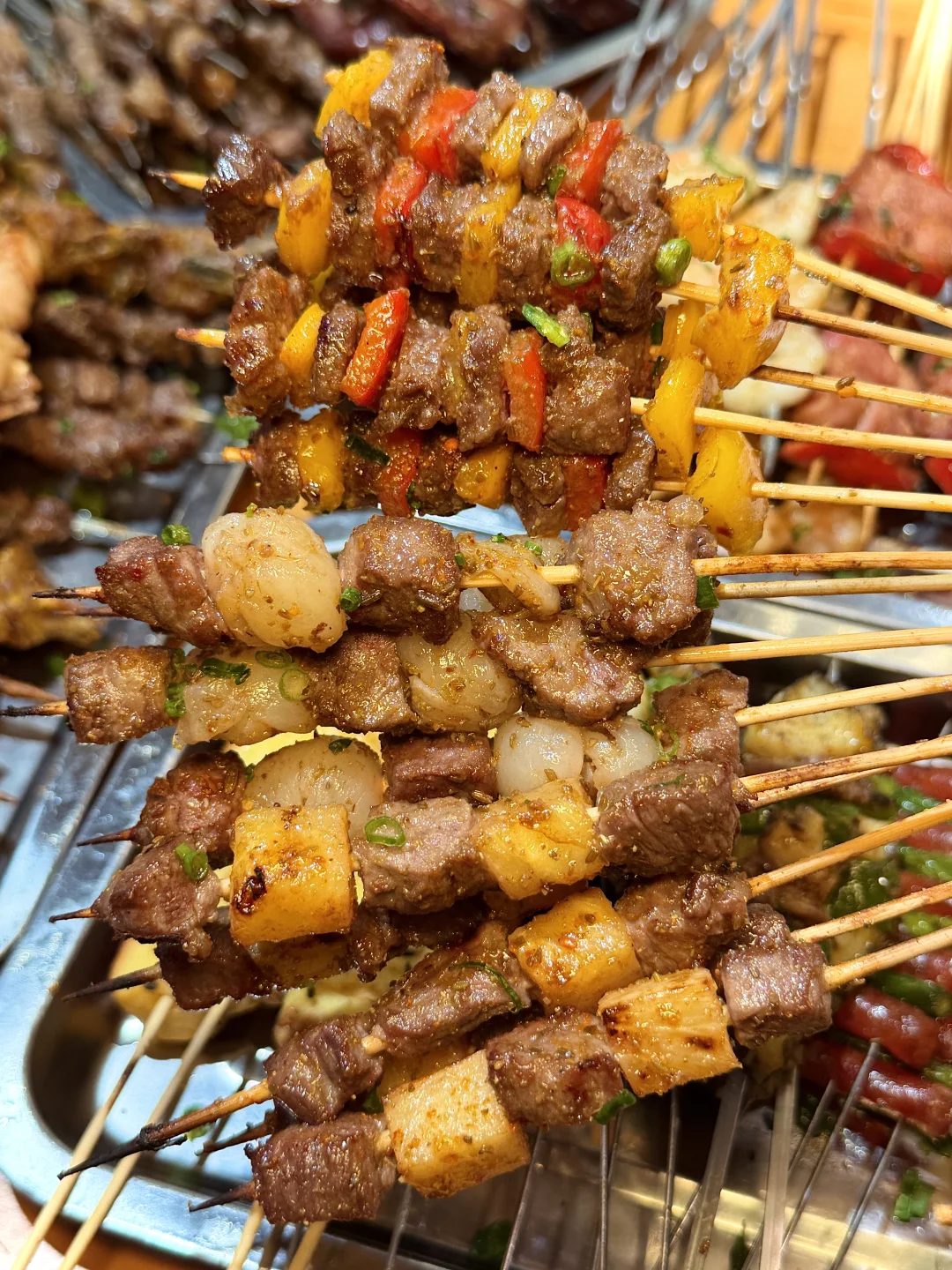 感谢本地人带路,逛完广州塔直奔这里,地铁直达! 吃到了玉米粑粑、桂花酒酿大福、椰汁冰粥、榴莲山竹冰等特色广州小吃美食~口袋馍配虾仁巨巨巨香!烧烤都是手工现串的,近几十种随意自选、牛肉串、菠萝牛肉粒、烤乳鸽、烤虾都绝……小龙虾拌面好好吃🤤🤤盲点一桌没踩雷! 基本上来广州旅游都会推荐第一顿来这里,光看图就知道多好吃了…生意jujuju🔥,想去吃的一定要早点!!! 记住这个地址📍《易拾年烤铺•株洲地标烧烤(天河棠下店)》