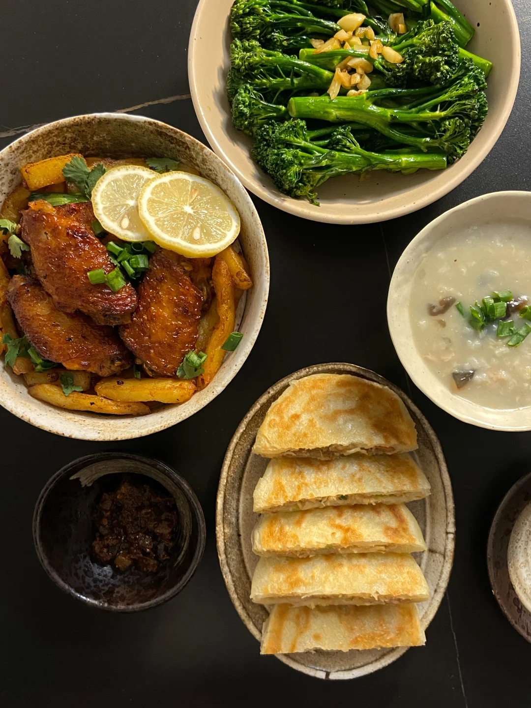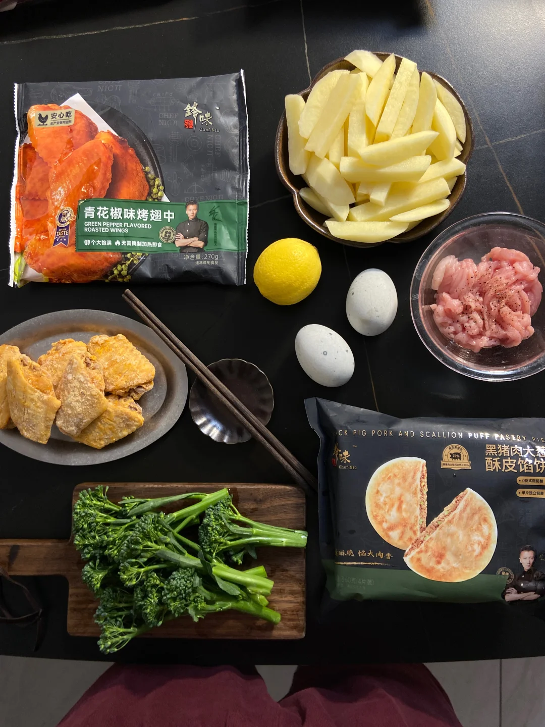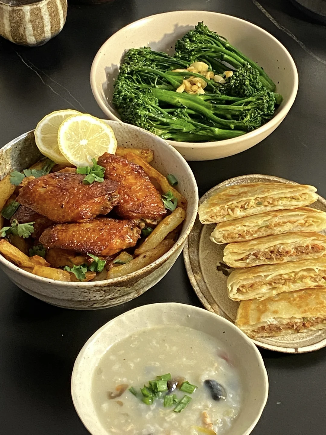 准时起床做早饭!其实早饭才是每天关键一顿,早餐要吃好!今天做的丰盛点,煎了酥皮馅饼,烤了几个青花椒味的鸡翅,今天的中式早餐来啦!