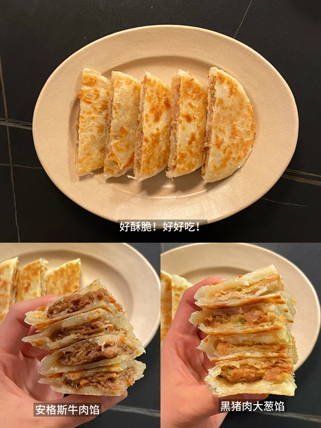 一共两个口味,安格斯牛肉和黑猪肉大葱,安格斯牛肉馅饼用的澳洲安格斯牛臀肉,肉质紧实,黑猪肉大葱馅饼选用冷鲜黑猪前腿肉,肉源两小时直达工厂的那种~非常新鲜!皮薄馅儿大真香啊,馅料肉含量≥70%,这个皮煎了之后更酥脆,足足八层起酥,肉馅很饱满,一口下去那个酥脆程度真好吃,跟营养早餐一拍即合✋