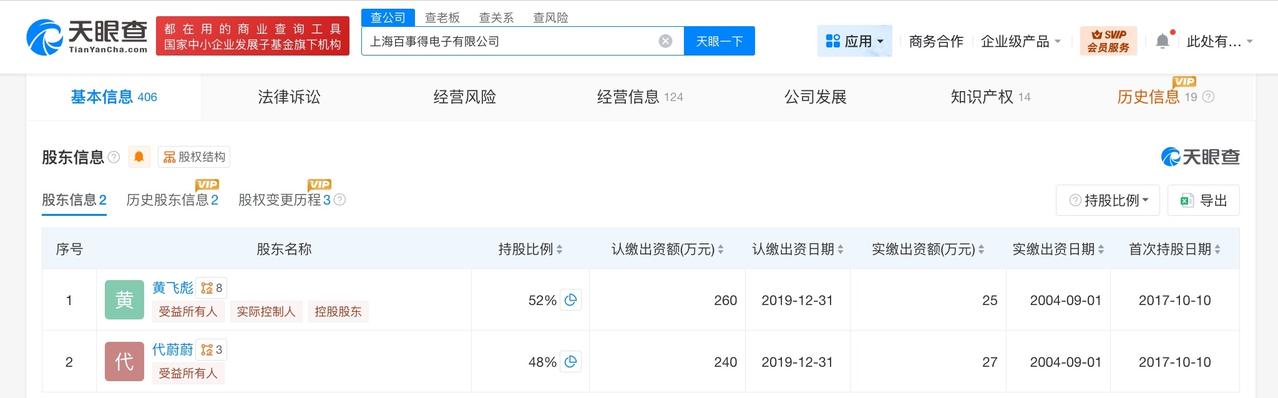 罗技代运营公司已成立25年 罗技代运营公司旗下分公司均已注销 在罗技“辱客”风波的舆论旋涡中,品牌方在26日深夜发布的一纸致歉声明,将核心责任指向代运营公司——上海百事得电子有限公司的“员工个人”。相关话题引发热议。 天眼查App显示,上海百事得电子有限公司成立于2001年3月,法定代表人为黄飞彪,注册资本500万人民币,经营范围含电子产品、通讯设备、计算机、软件及辅助设备、办公用品、五金交电、机械设备的销售,信息咨询服务,项目策划与公关服务等。股东信息显示,该公司由黄飞彪、代蔚蔚共同持股。分支机构信息显示,该公司旗下的三家分公司均已注销。 天眼查信息:
