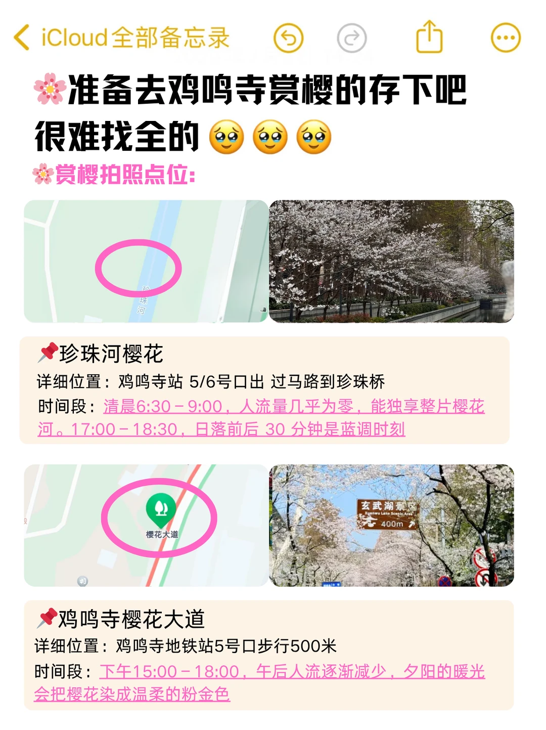 1. 珍珠河樱花带📍位置:鸡鸣寺站 5/6 号口过马路到珍珠桥⏰时间:清晨 6:30-9:00
