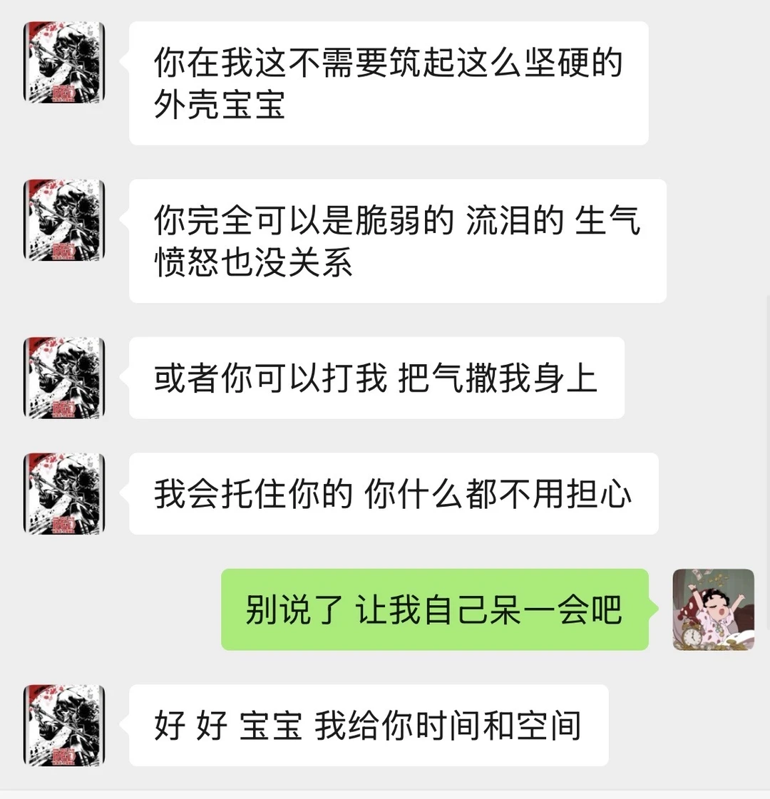 翻看以前跟男朋友的聊天记录 虽然过去好久了 但还是觉得很感动 有个事事有回应 情绪稳定的另一半真的很幸福